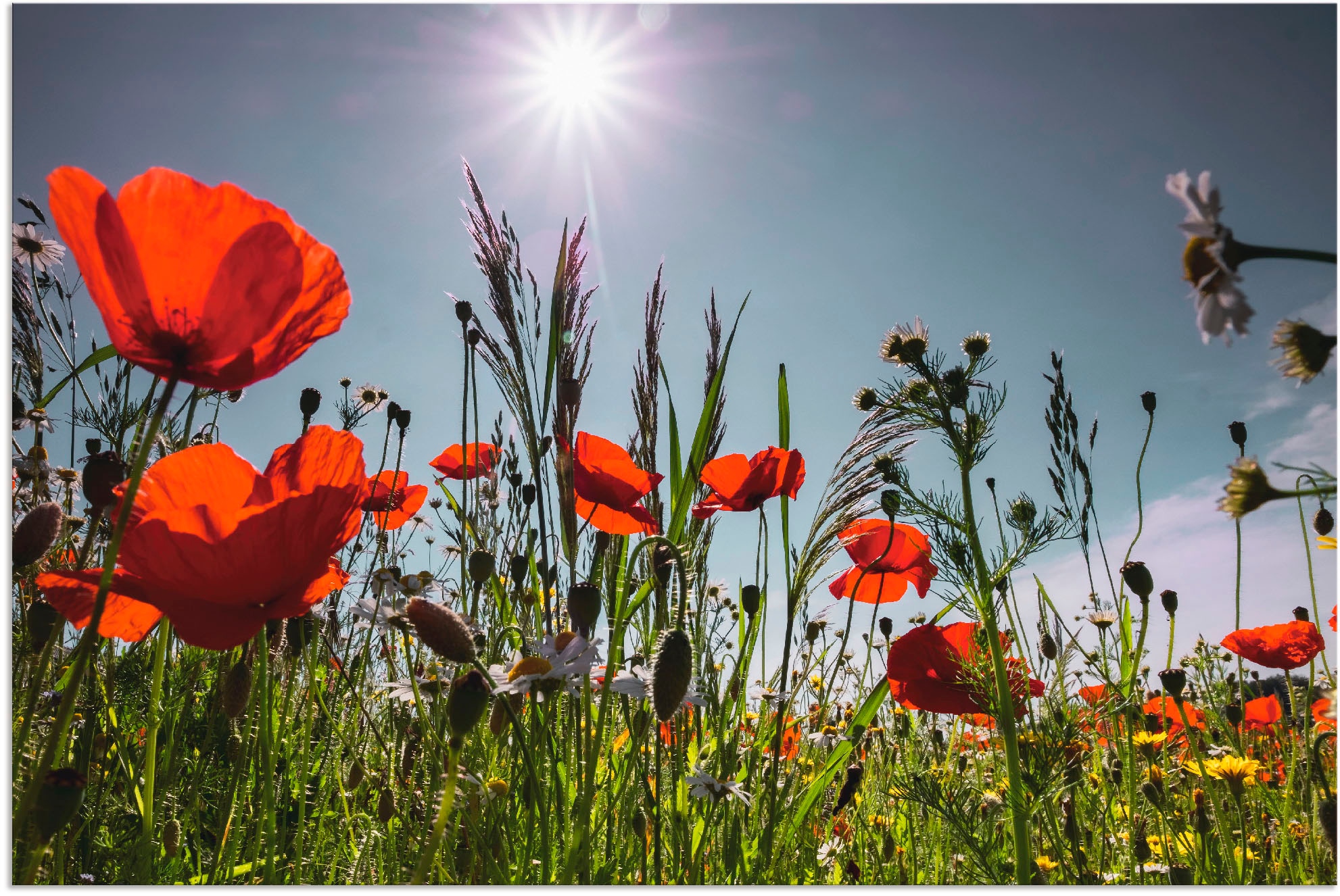 Mit viel Liebe für kunstvolles Wohnen verleiht unser Leinwandbild mit dem Motiv "Mohnblumenwiese" von weris7554 Deinem Zuhause Charakter. Es begeistert durch hochauflösende Druckqualität und hochwertige Materialien – Made in Germany.