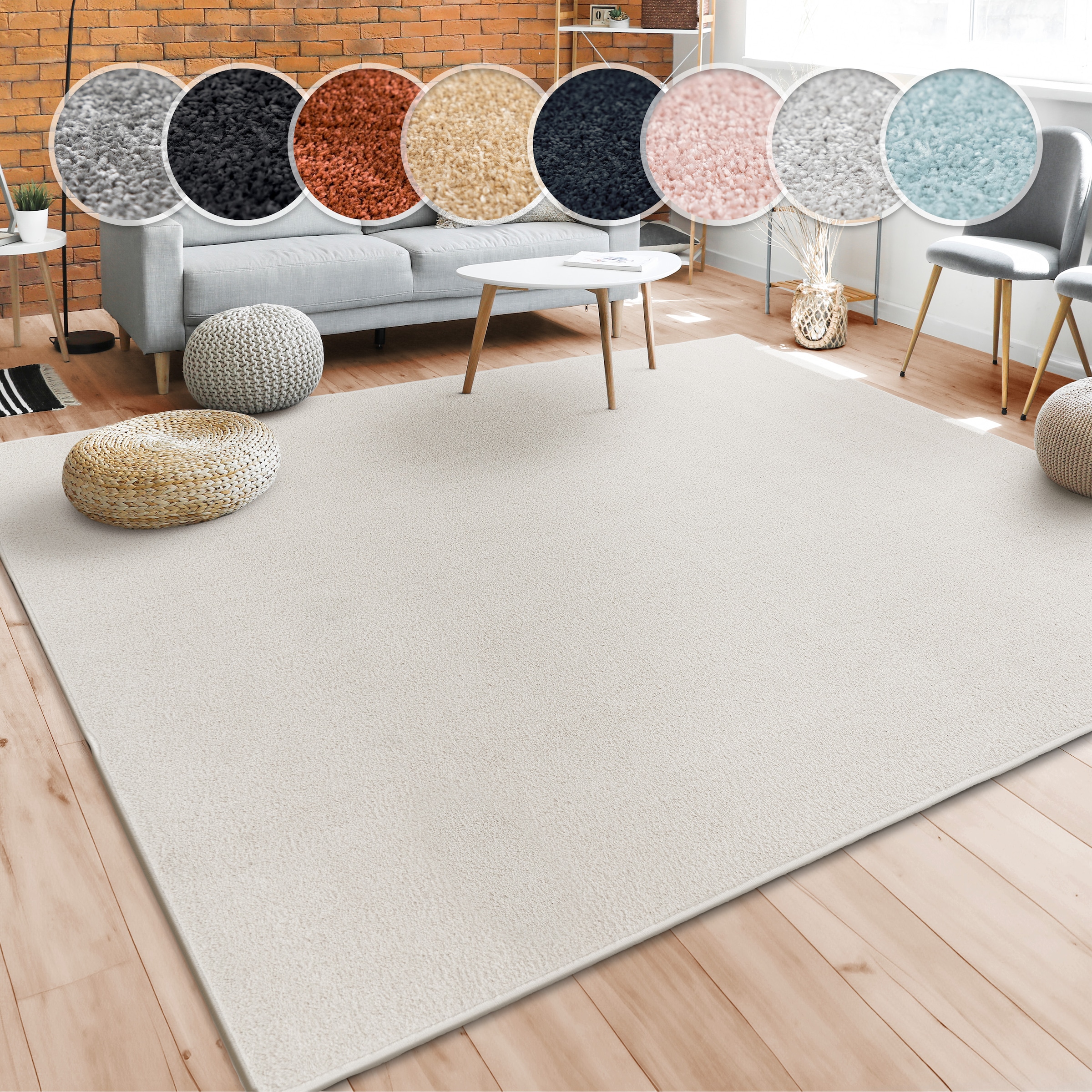 Wo sich andere Teppiche mit knalligen Farben und komplizierten Designs in den Vordergrund drängen müssen, schaffen es die einfarbigen Wohnwunder dieser Kollektion mit schlichter Eleganz und ausdrucksstarken Farben Ihren Einrichtungsstil subtil und gemütlich aufzuwerten. Egal, ob Sie sich für die sanften Pastellfarben Rosé und Türkis entscheiden, es doch lieber unaufdringlich in Grau oder Beige mögen oder doch in Gold und Silber einen Hauch extravaganten Luxus in Ihre vier Wände zaubern wollen ? diese vielseitigen Teppiche finden wirklich in jedem Zimmer und Wohnstil einen Platz! Alle Teppiche dieser Kurzflor-Kollektion sind vollkommen frei von Schadstoffen und garantieren Ihnen vollkommen unbedenklichen Wohnkomfort. Darüber hinaus sorgt die hochwertige Herstellung aus Polypropylen und der flexible Teppichrücken aus Filz dafür, dass sich die Gewebe kinderleicht reinigen lassen und mit einer unkomplizierten Handhabe glänzen. Das widerstandsfähige Material überzeugt mit enormer Strapazierfähigkeit, ist angenehm trittfest und somit auch für viel durchlaufene Bereiche bestens geeignet.