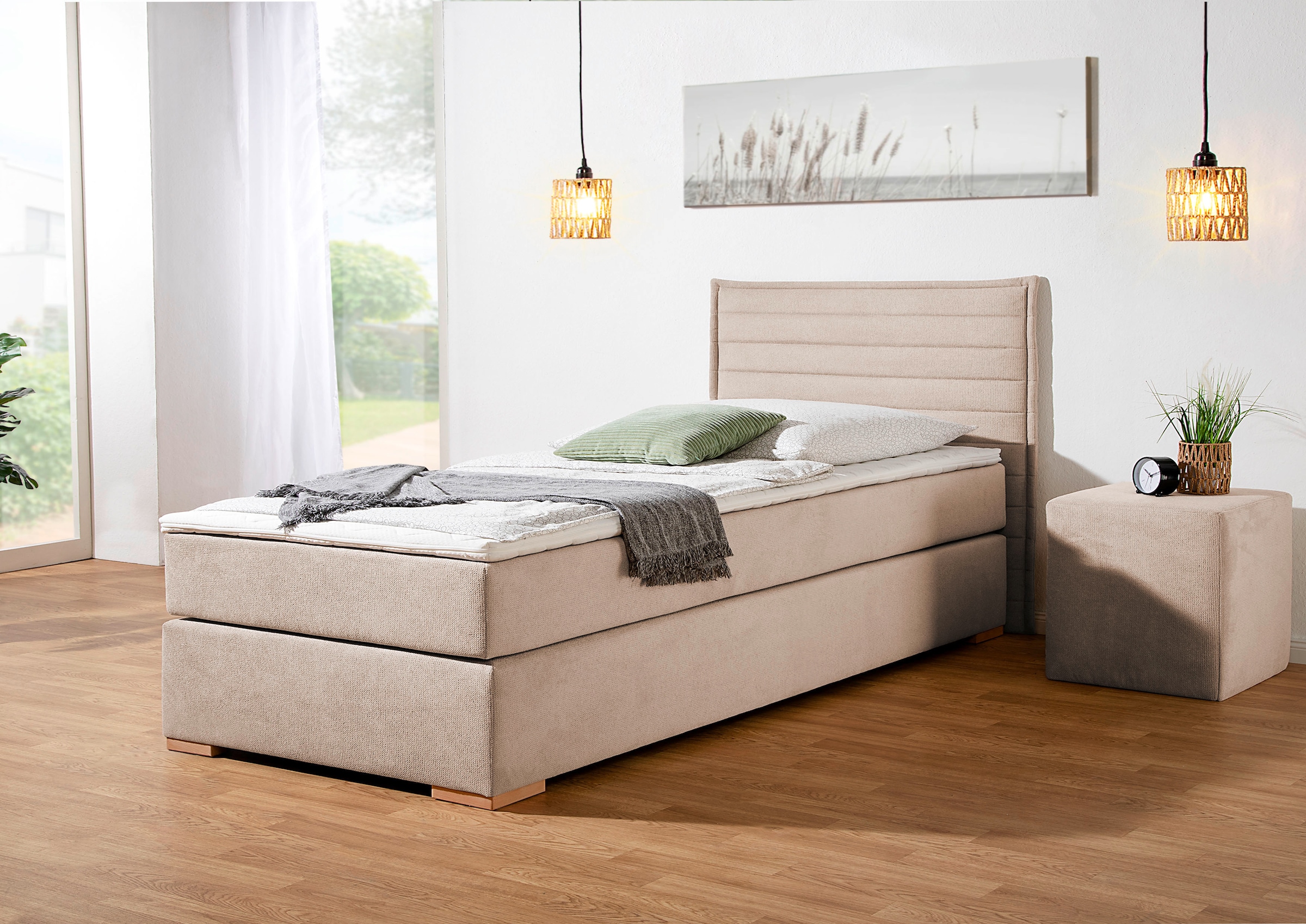 Wissenswertes | Boxbett (Einfachfederung) mit Bettkasten, in 2 Farben, 5 Breiten , 2 Matratzenarten in 2 Härtegraden |