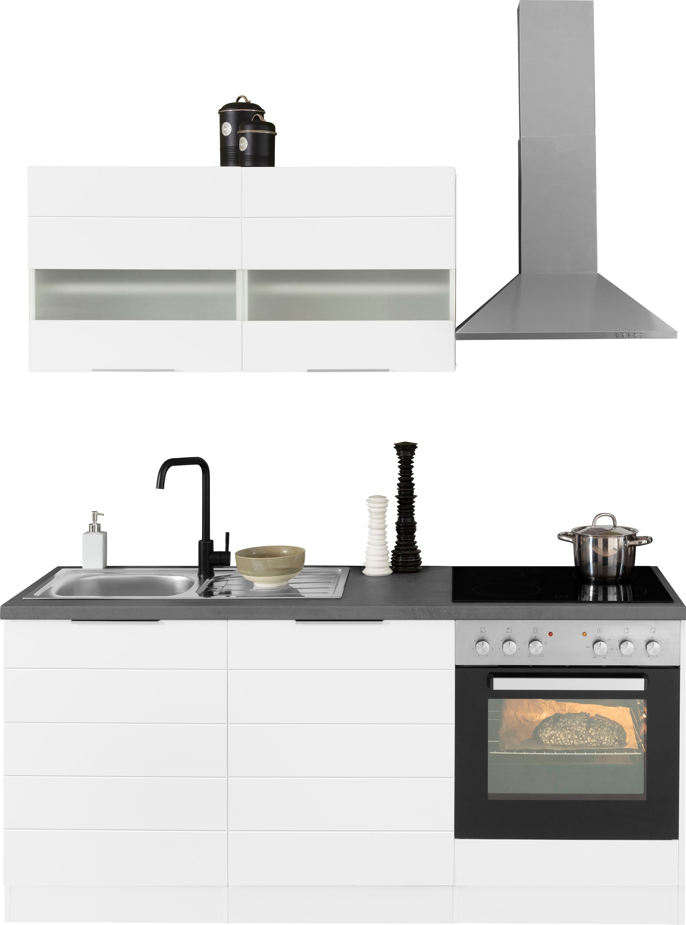 KOCHSTATION Küchenzeile »KS-Luhe« 180 cm breit, wahlweise mit oder ohne E-Geräten, gefräste MDF-Fronten