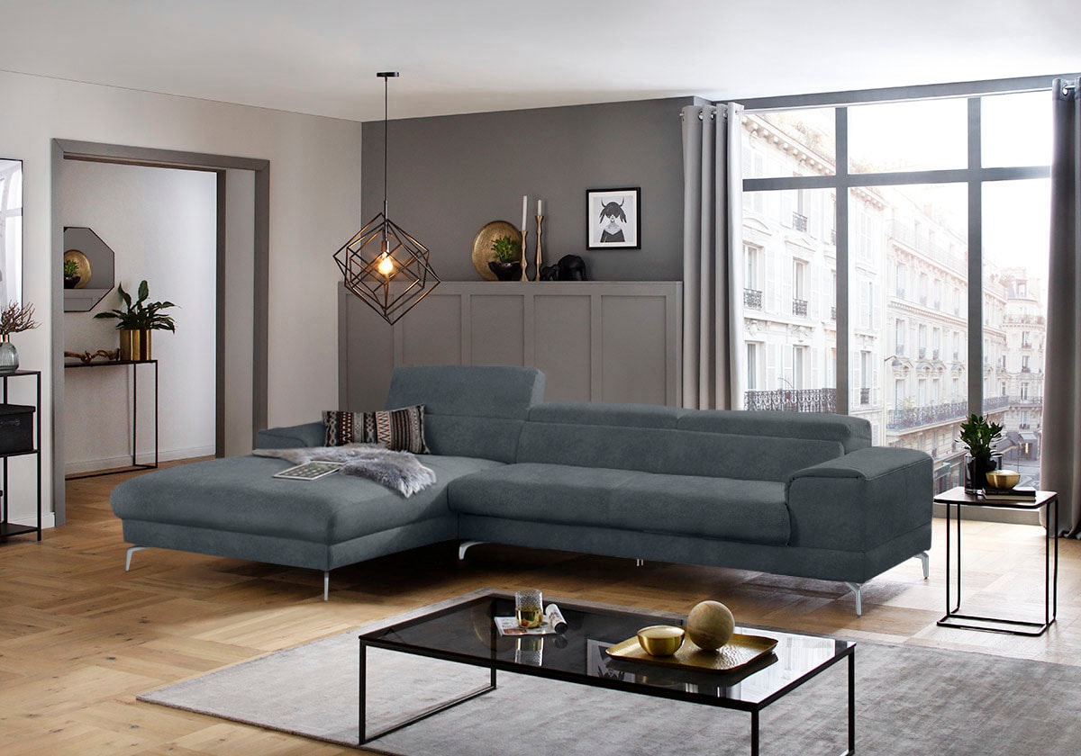 W.SCHILLIG Ecksofa »piedroo, Designsofa mit tollem Sitzkomfort, bequem und elegant, L-Form« Kopfteilverstellung, wahlweise mit Sitztiefenverstellung, Breite 343cm