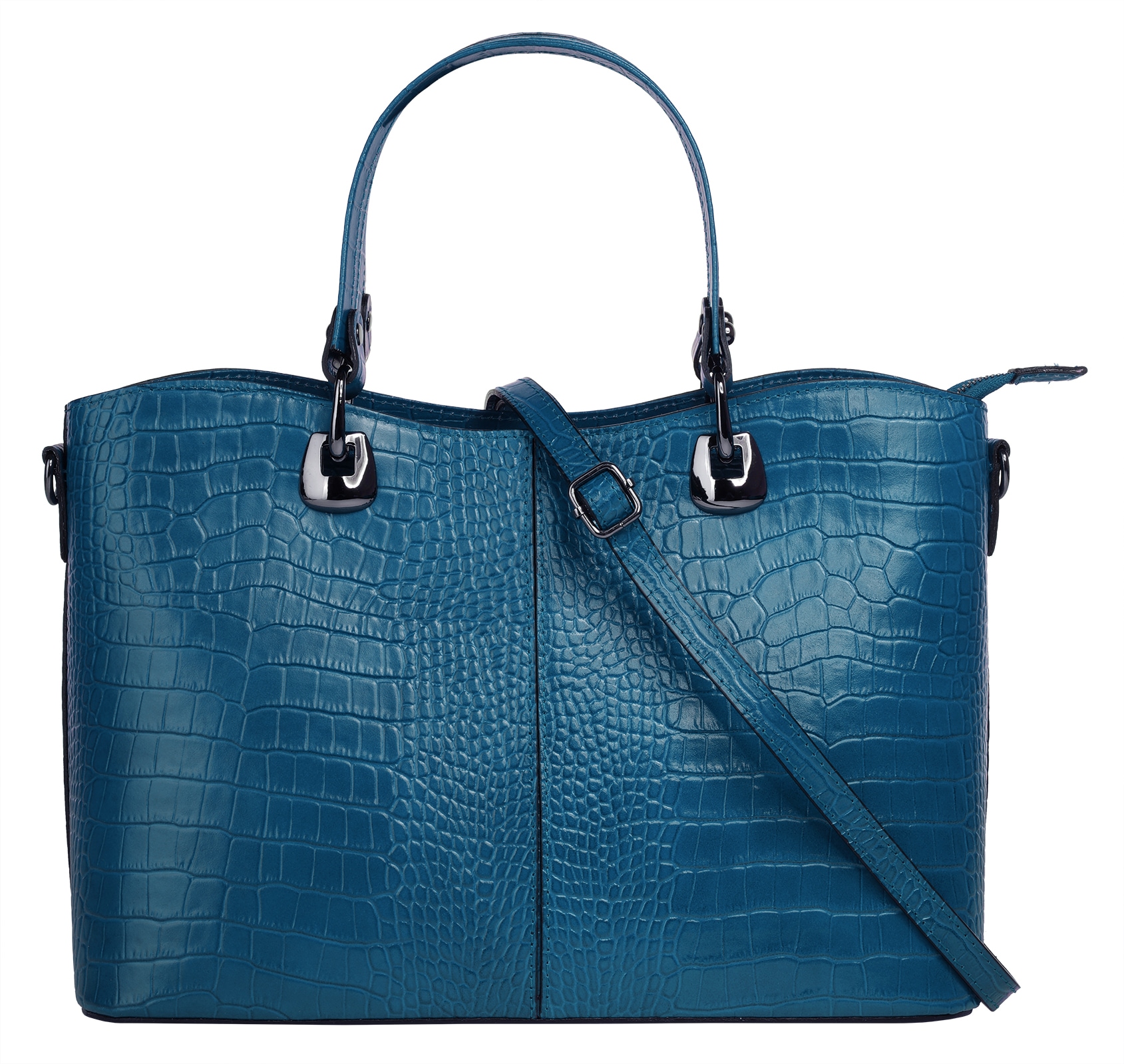 Cluty präsentiert eine modische Leder Handtasche zum Verlieben! Die elegante Kroko-Optik macht sie zu einem absoluten Hingucker. Das Hauptfach wird durch eine verschließbare Innentasche zweigeteilt und bietet Ihnen damit mehr Spielraum für die Organisation Ihrer persönlichen Gegenstände. Außerdem steht Ihnen ein Smartphonefach zur sicheren Aufbewahrung Ihres Gerätes zur Verfügung.