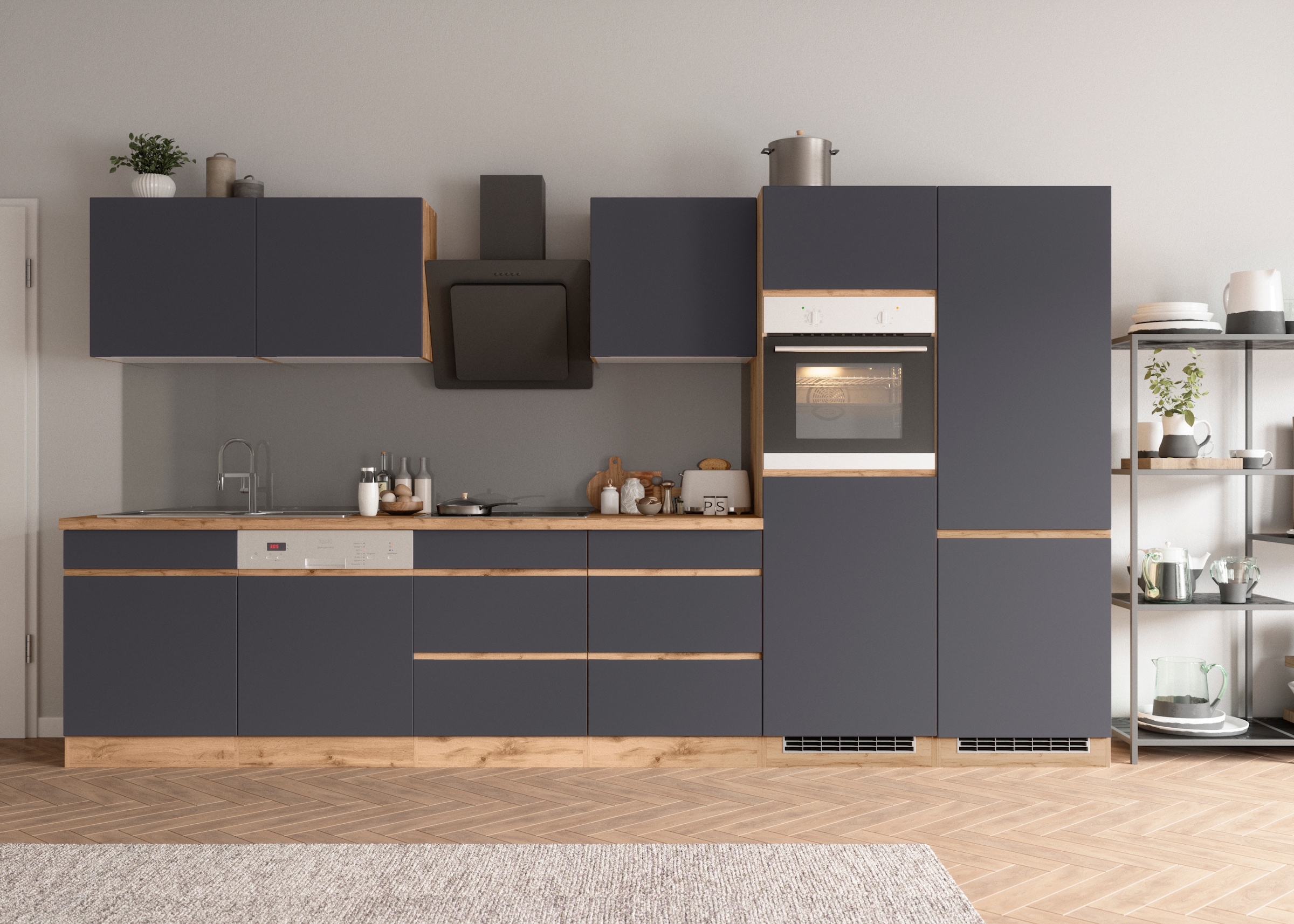 KOCHSTATION Küchenzeile »KS-Riesa« Stellbreite 390 cm, wahlweise mit Induktionskochfeld