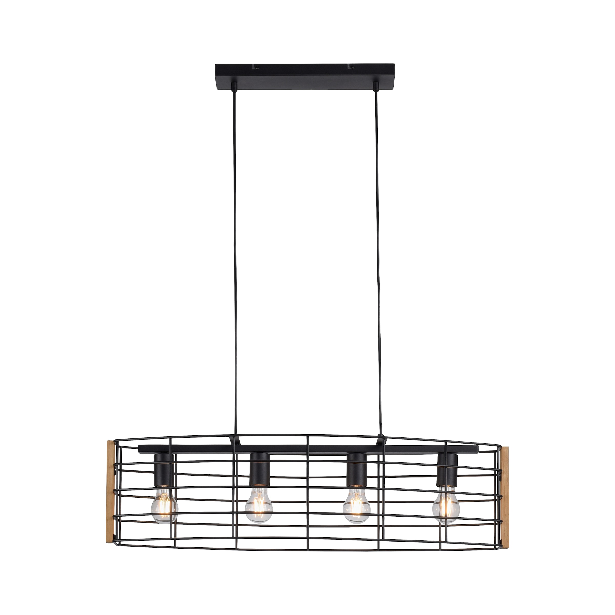 Die zweiflammige Wandlampe DRAIN mit ihrem ovalen Leuchtenschirm punktet mit ihrem individuellen Design, welches sich besonders gut im Wohnbereich macht. Die Wandhalterung sowie die Leuchtmittelfassungen sind in schwarz gehalten. Der Leuchtenschirm aus Metall im Käfiglook wird an den Seiten durch Holz abgerundet. Dadurch bringt die Lampe eine gewisse Gemütlichkeit in Ihre Räume. Durch den offen gestalteten Leuchtenschirm ist der Blick auf das Leuchtmittel frei, weswegen hier passende Leuchtmittel gewählt werden sollten, welche den Gesamtlook der Wand- und Deckenleuchte abrunden.