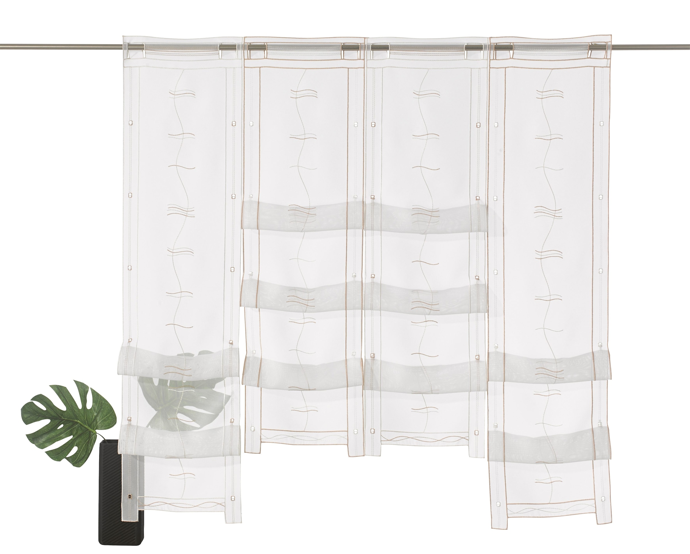 Hinweis Aufhängung | Aufhängung erfolgt mittels Stangendurchzug an der Gardinenstange. |