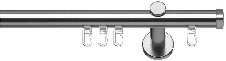 Für die perfekte Harmonie an Ihrem Fenster. Die hochwertige Gardinenstange mit Innenlauf von »Indeko« in Edelstahloptik und dem Durchmesser von 16 mm lässt Ihre Gardinen und Vorhänge perfekt gleiten und passt sich optimal Ihren Räumlichkeiten an. Das Innenlaufprofil ist aus Aluminium, das Zubehör aus Metall. . Optik: Edelstahl-Optik. Material Stange: Aluminium. Material Träger: Metall. Material Ringe/ Sonstiges: Endstücke aus Metall. Bestandteile: Gardinenstange. Träger. Endstücke. Befestigungsmaterial. Schrauben. Dübel. Gleiter. inklusive Montageanleitung. Stangendurchmesser/ Maßangaben: 16 mm. Sie können nach Maß zwischen 100 cm (min.) und 480 cm (max.) bestellen. Innerhalb der Minimum- und Maximum-Länge können Sie in cm-Schritten wählen. 7,5 cm Abstand Wand zur Mitte Gardinenstange 1-läufig. 5,5/10,5 cm Abstand Wand zur Mitte Gardinenstange 2-läufig. 1 cm Länge Endstück. Ab Länge von 230 cm wird ein zusätzlicher Träger geliefert. Ab Länge von 240 cm wird ein zusätzliches Verbindungsstück geliefert. Ausmessen: Mit folgender Formel errechnet man die Gardinenstangenlänge: Gardinenstangenlänge = Fensterbreite + ca 20 cm Überstand links + ca 20 cm Überstand rechts. Montage von Wand zu Wand Wir empfehlen: Wandabstand ca. 8 cm (Überstände Fensterbank und/oder Heizkörper beachten) Deckenabstand ca. 5cm. Montage: Träger mit Montageplatte - diese können sie an 3 Punkten an die Wand schrauben. Die Montageplatte wird anschließend mit einer Abdeckkappe versehen und mit dem Gewindebolzen fixiert. Der Gewindebolzen dient zur Aufnahme der Rohrstücke. Die Rohrstücke werden auf das Rohr geschoben und auf die Bolzen gesteckt. Rohrstück mit dem Innensechskantschlüssel am Bolzen befestigen. Das Rohr wird über die Rohrdurchführung ebenfalls mit dem Innensechskantschlüssel befestigt. Gardinen mit Gleitern versehen und in das Profil einfädeln. Gleiter können für alle Gardinenbänder verwendet werden. (Träger werden zusammen gebaut geliefert). Wissenwertes: Zur Wandmontage geeignet und nicht zur Deckenmontage geeignet. Das angegebene Maß ist das Stangenmaß! Dazu kommen noch die beiden Endstücke. Gardinenstangen müssen breiter als das Fenster sein! Bitte unbedingt Schrauben/Dübel entsprechend der Wandbeschaffenheit verwenden! Pflegehinweis: Zur Pflege können Sie die Ware vorsichtig mit einem Staubwedel abstauben oder mit einem trockenem Tuch vorsichtig abwischen. Verwenden Sie keine Reinigungsmittel. Bestellung: Dieses Produkt ist eine Maßbestellung und wird speziell für Sie angefertigt. Bitte beachten Sie, dass eine Rückgabe daher ausgeschlossen ist (außer bei begründeten Qualitätsmängeln).| Details | |