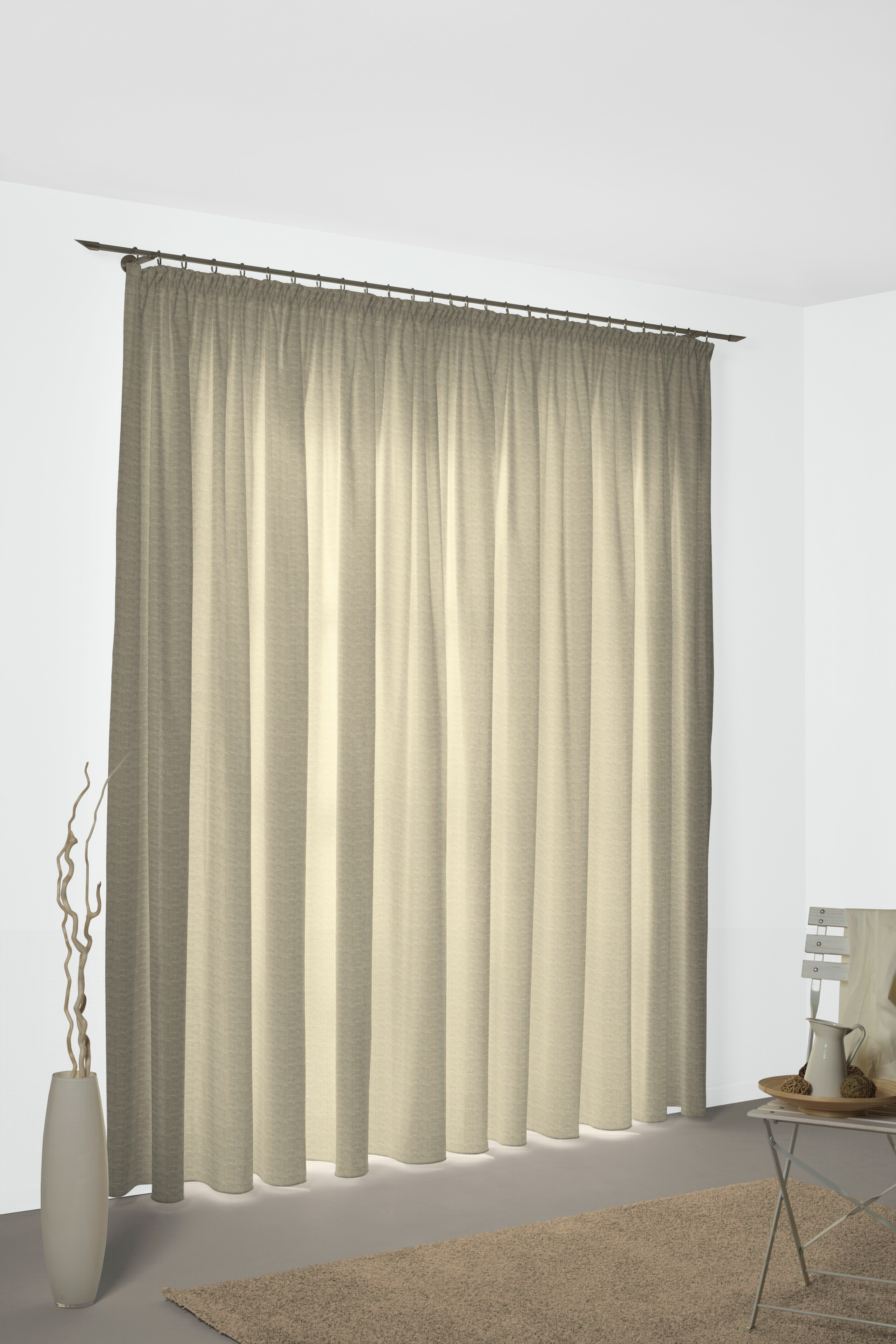 Mit dem Basic-Artikel TORBOLE entscheiden Sie sich für einen Einzelschal mit 7 Schlaufen (ca. 5 cm breit / 7 cm hoch) in einer melierten Optik! Dieser Artikel lässt sich sehr gut mit den Artikeln Benewitz, Laufenberg & Stuben kombinieren. Passend zu diesem Artikel können Sie auch Schiebepaneelen, Tischwäsche und Kissenhüllen bestellen um Ihre Dekoration abzurunden. In diesem "Nach Maß" Programm können Sie Höhen in 10 cm Schritten bestellen. Bitte beachten Sie, Aufgrund von Bildschirmeinstellungen kann die tatsächliche Farbe variieren!
