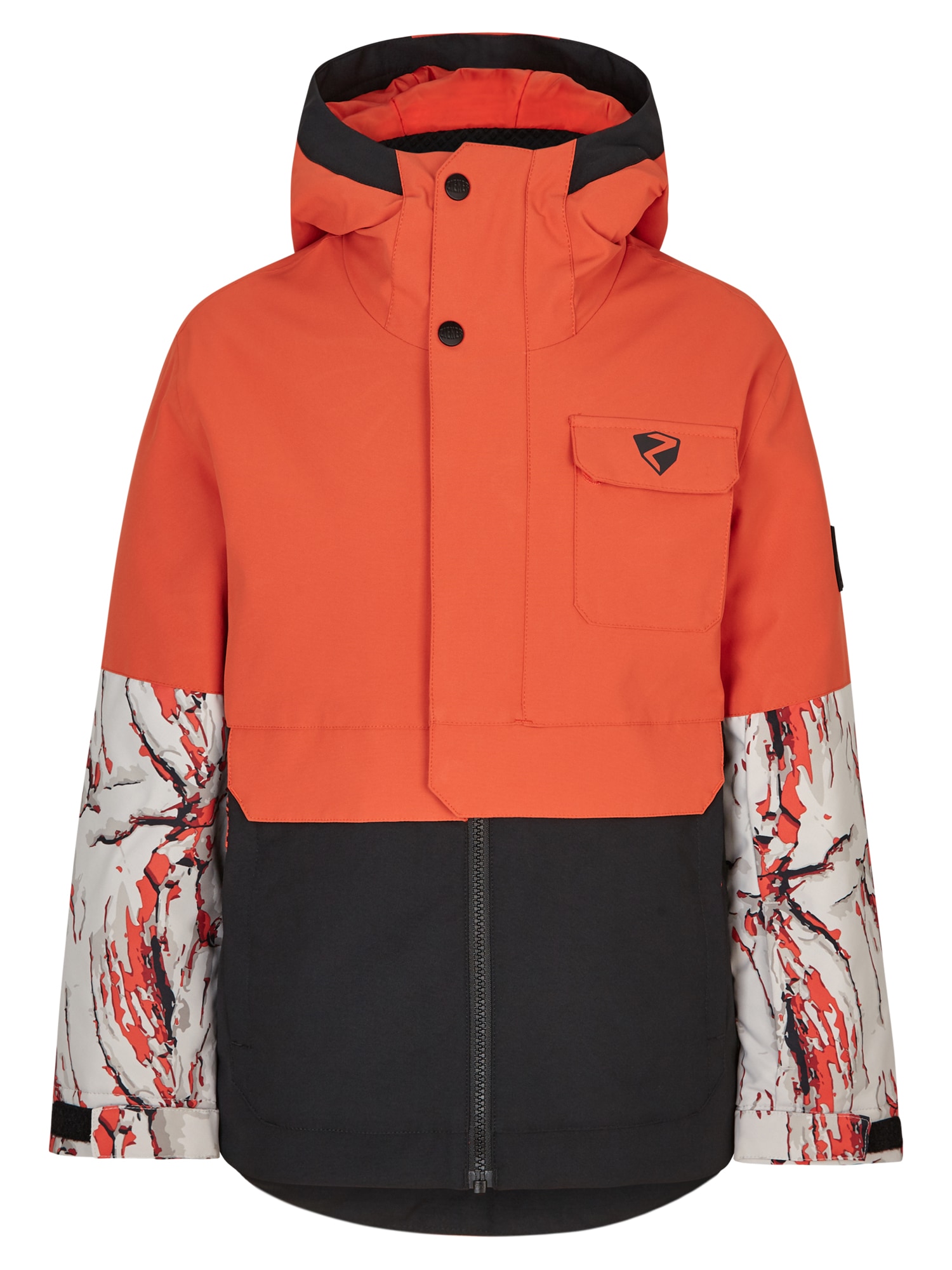 Die funktionelle, wattierte ZIENER Skijacke AWED JUNIOR für Jungs sieht nicht nur superlässig aus, sondern sorgt dank der atmungsaktiven, wasser- und winddichten ZIENER AQUASHIELD® Membran (Wassersäule 10.000mm/Atmungsaktivität 10.000g/m²/24h) für ein warmes und angenehmes Klima. Die Jacke trotzt mit ihrer 120g/m² Wattierung jedem Wetter. Verschweißte Nähte und ein Schneefang runden den Funktionskomfort ab. In der aufgesetzten Brusttasche mit Klettverschluss sowie in den beiden großen Eingriffstaschen mit Reißverschluss lassen sich die wichtigsten Dinge verstauen. Weitere Details sind eine Skipasstasche, eine Tasche für Sonnen- und Skibrille elastische Ärmelinnenbündchen und reflektierende Designelemente. Die Kapuze entspricht der Norm DIN EN 14682 für Sicherheit von Kinderbekleidung.