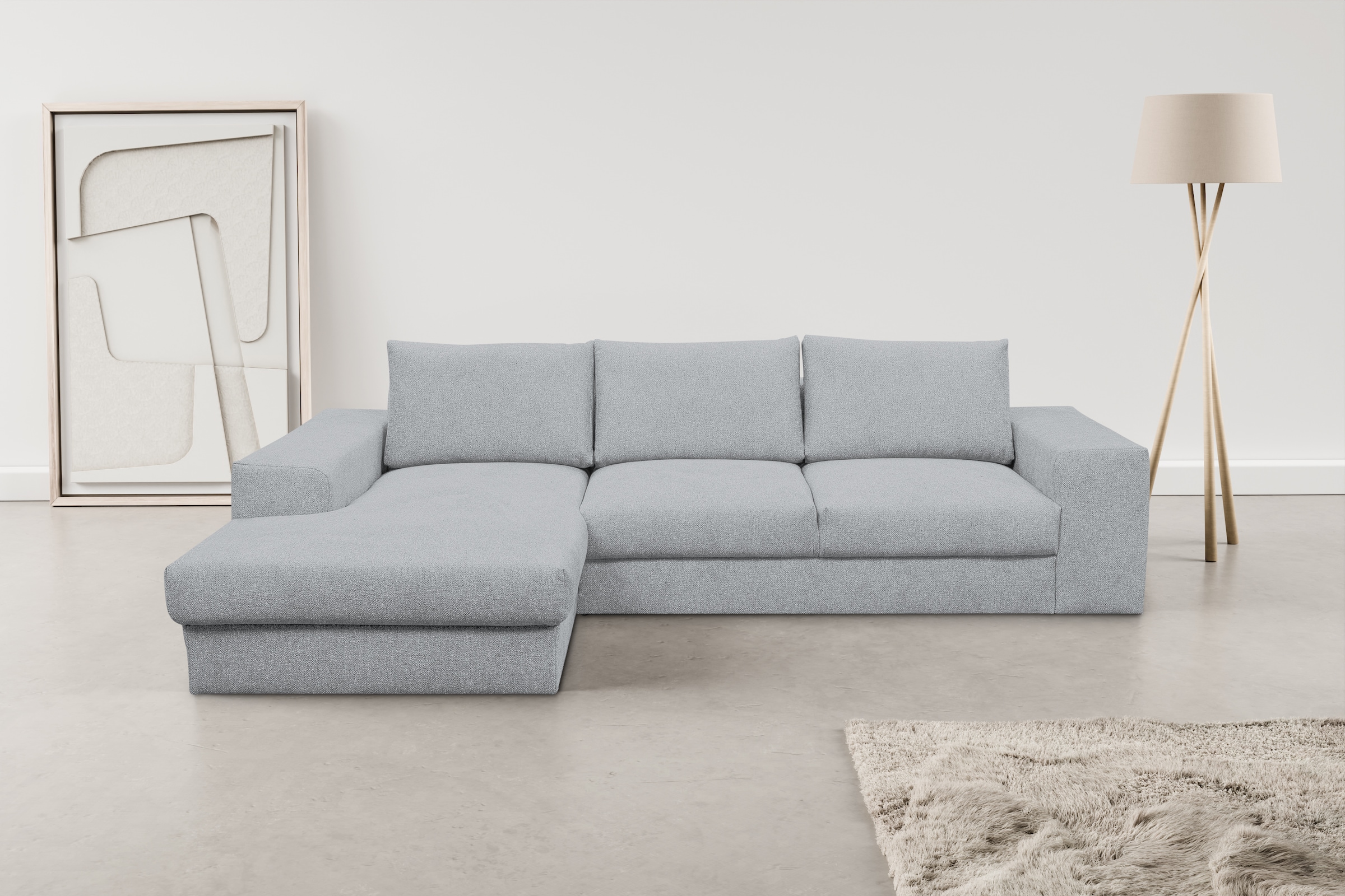 WERK2 Ecksofa »Rozzana Design Ecksofa mit hohem Komfort, zeitlos & elegant, L-Form,« in kuschelweichen Trendstoffen Cord, Breitcord und Plüsch