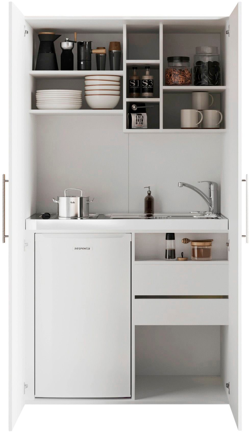 RESPEKTA Pantryküche »Peter, mit Duo Kochfeld, wahlweise mit Mikrowelle, Korpus Weiß,« Breite 104 cm, in exclusiver Konfiguration für OTTO