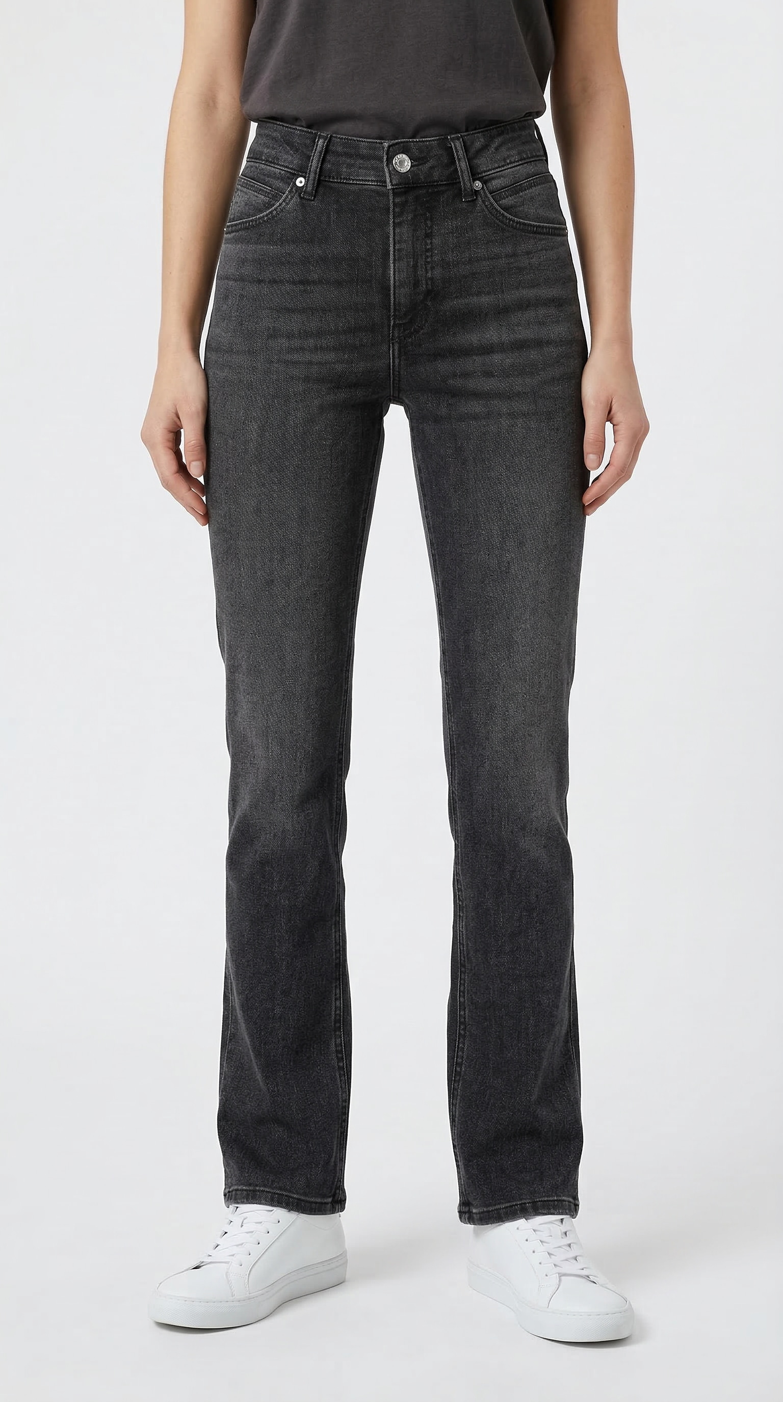 - Schmal geschnitten mit krempelbarem Saum