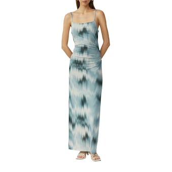 Das Sommerkleid von QS fällt durch das ganzflächige Muster sofort ins Auge. Der anschmiegsame und leichte Webstoff macht das Kleid besonders bequem.