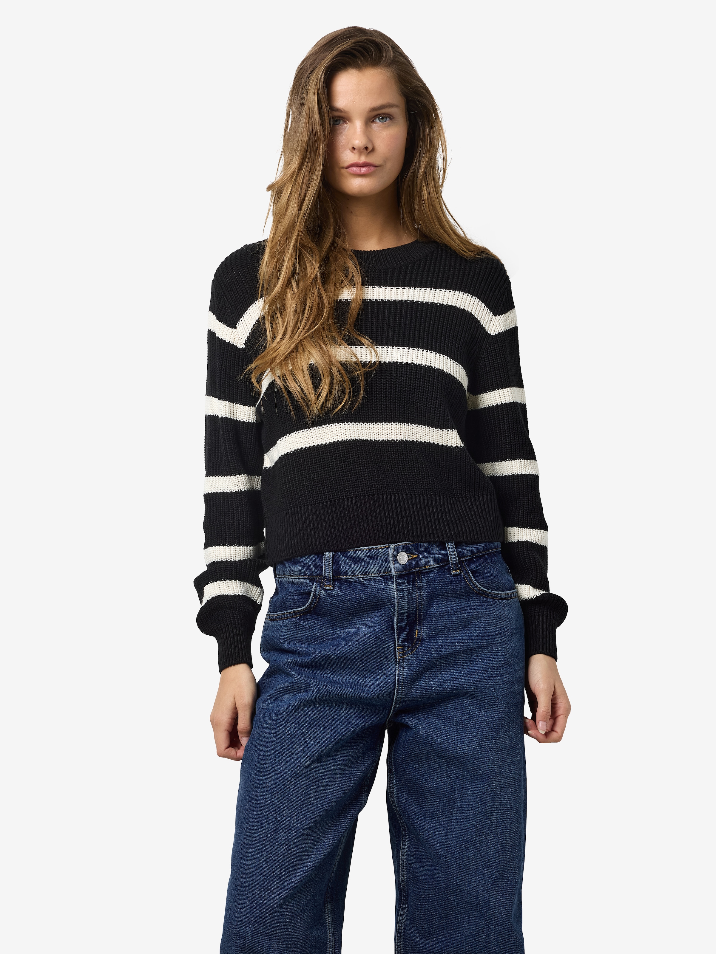 Kombistarker Damen-Strickpullover der Marke Noisy may. Mit einem kurzen Schnitt. Die Ärmel sind lang. . Durch den elastischen Rippstrick passt sich das Oberteil den Bewegungen an.