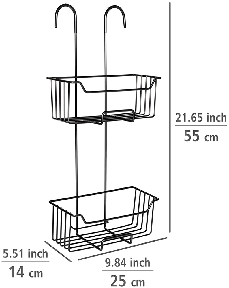 In den zwei extra tiefen Körbchen haben Duschgel- und Shampooflaschen einen sicheren Stand, während durch das offene Draht-Design Wasser einfach abfließt. Gefertigt ist das Duschregal aus rostfreiem Edelstahl. Die moderne Optik in Schwarz matt macht das Bad-Zubehör zu einem eleganten Hingucker in Ihrer Dusche. Der Badhelfer hat Abmessungen von (B x H x T): 25 x 55 x 14 cm.