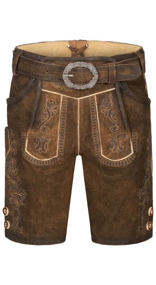 Die coole, traditionelle kurze Lederhose Alfons in Braun von Nübler, mit Gürtel lassen ihr Kind richtig fesch aussehen. Die unterschiedlichen Stickereien sind in Beige gehalten und passen perfekt zum Farbton der Hose. Die Knöpfe der Lederhose in Hirschhornoptik runden das Trachtenoutfit ab. Die klassische Brotzeitfalte dient zur Weitenregulierung. Tipp:Das Outfit Ihres kleinen Lieblings wird durch ein passendendes Trachtenhemd und Trachtenschuhe perfekt ergänzt.Die zur Lederhose passenden Pflegemittel erhöhen die Lebensdauer Ihrer Lederhose. Pflegehinweise:Lederpflege Material:100% Leder