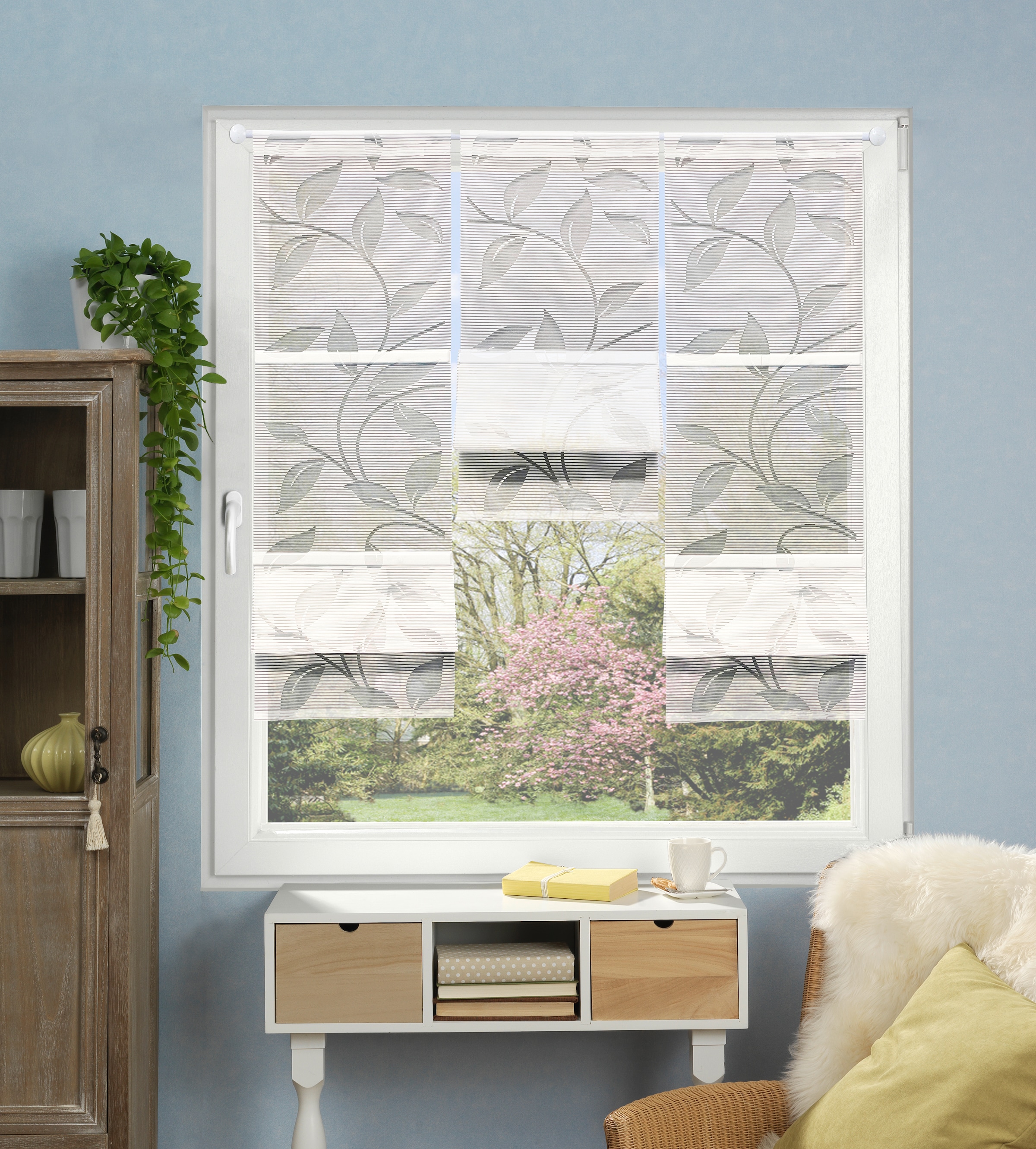 - halbtransparenter Stoff dämpft einfallendes Licht und bietet einen leichten Sichtschutz