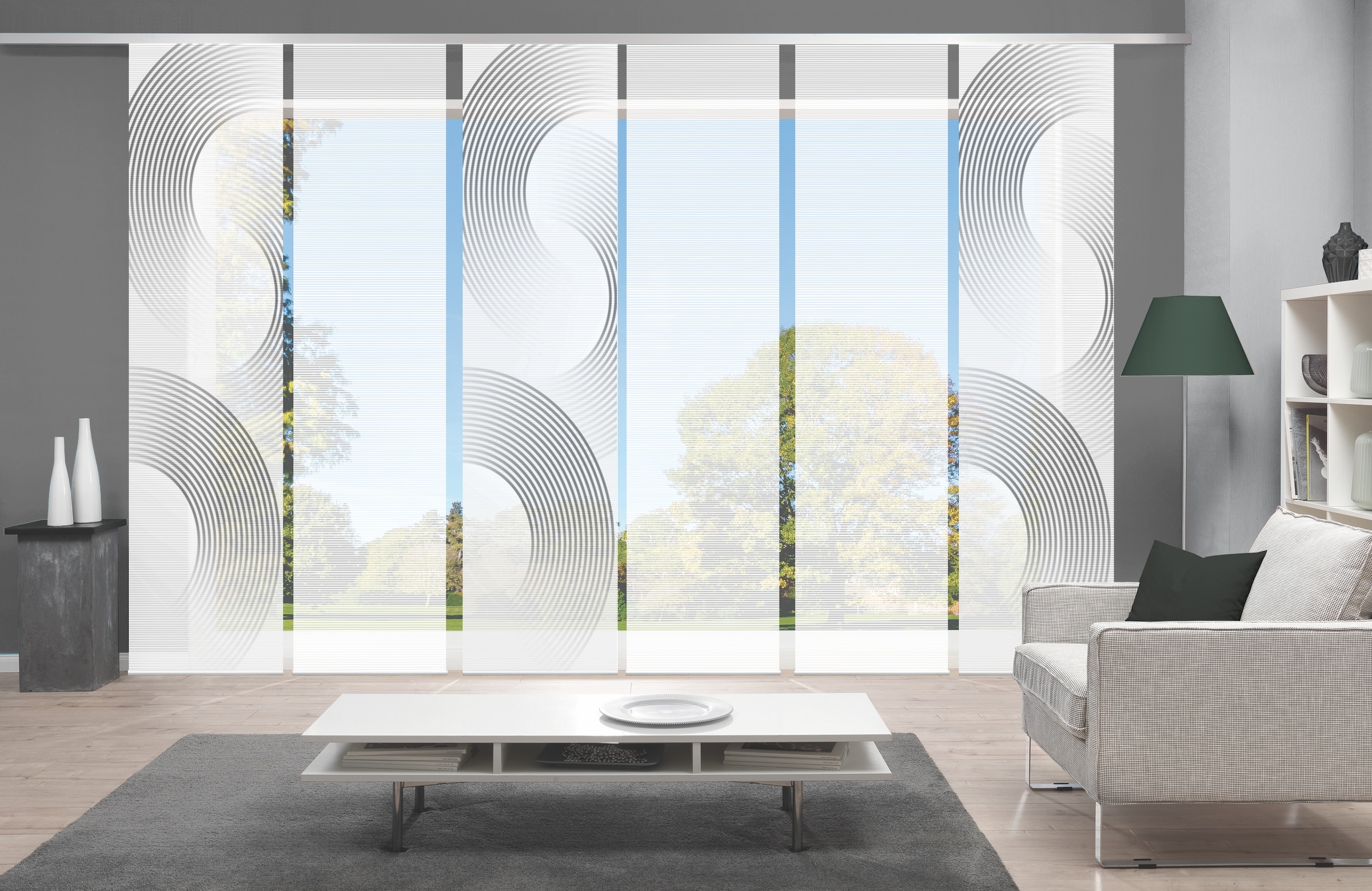 Hinweis Dekoration | Die angegebenen Maße sind die fertig dekorierten Maße.;Eine Schiebegardine ist eine schmale, glatt hängende Stoffbahn, die sich sowohl als Sichtschutz als auch zur Raumteilung eignet. Durch die Schiebetechnik sind Schiebegardinen sehr flexibel einsetzbar. |