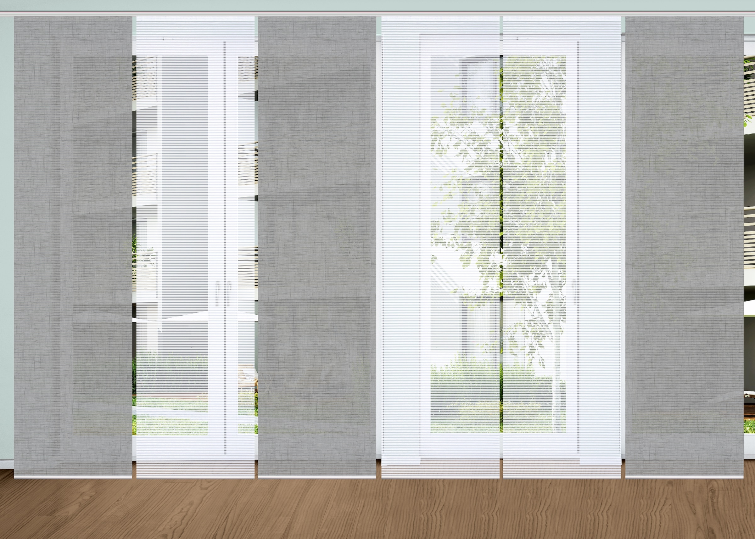 Inhalt: 3x Schiebevorhang bedruckt + 3 x Schiebevorhang Uni