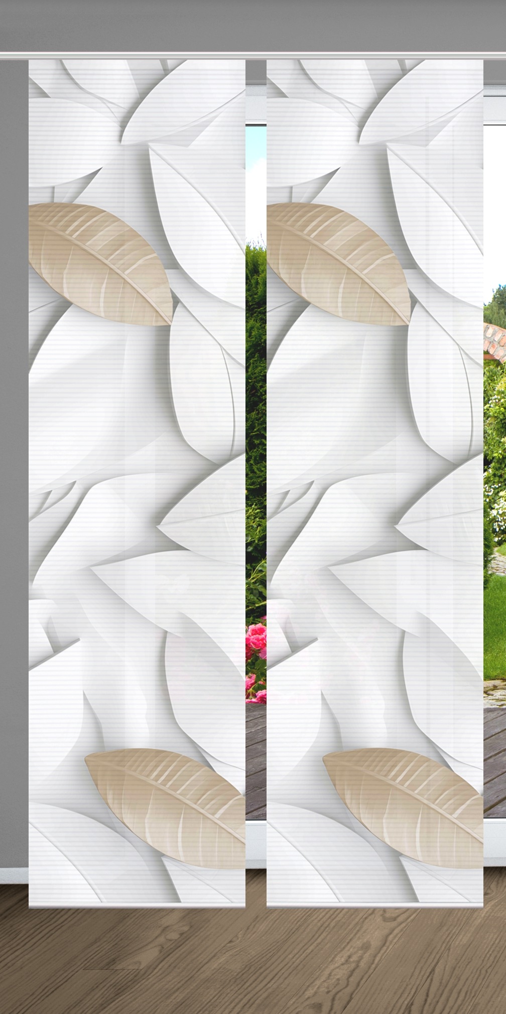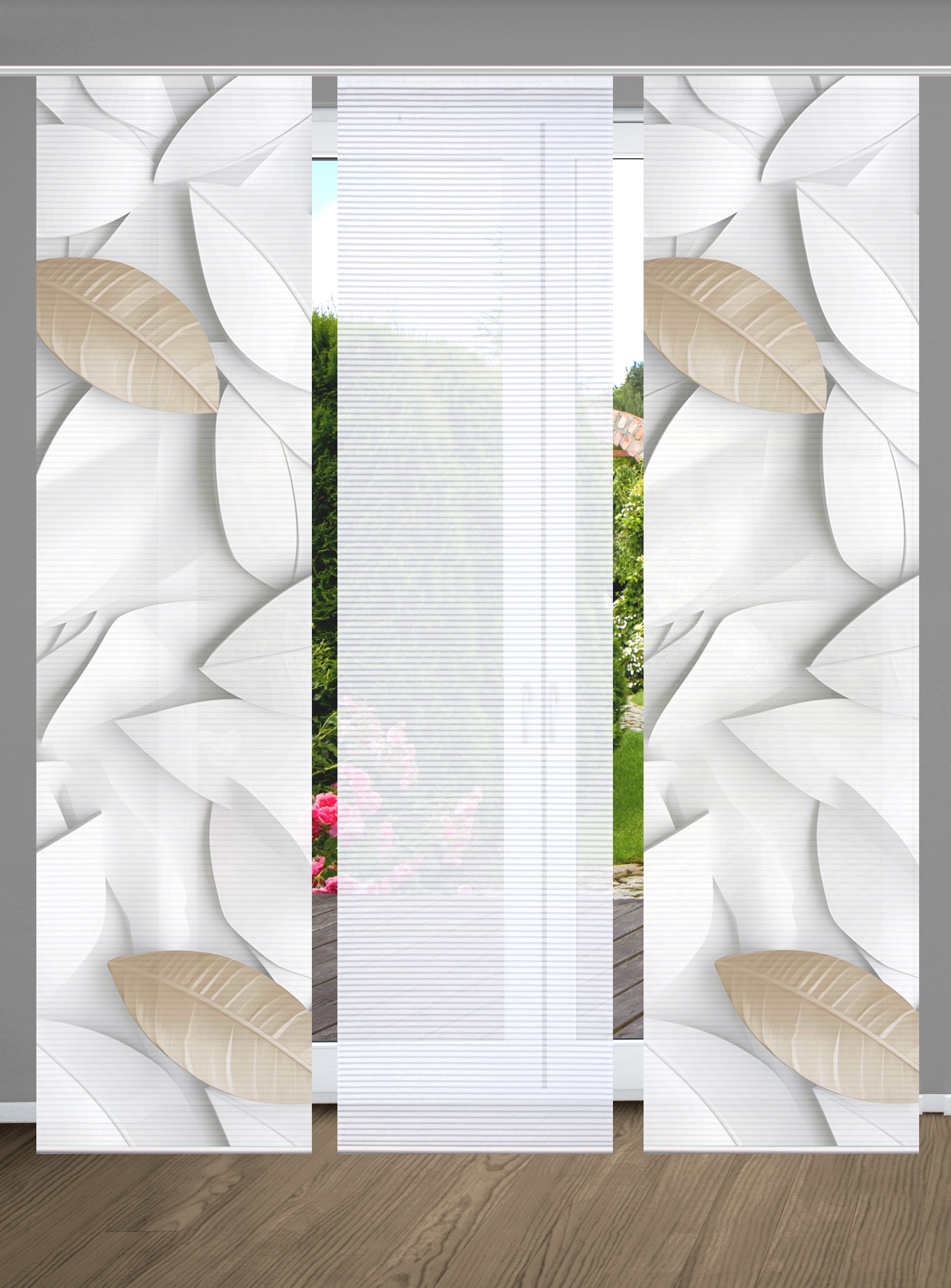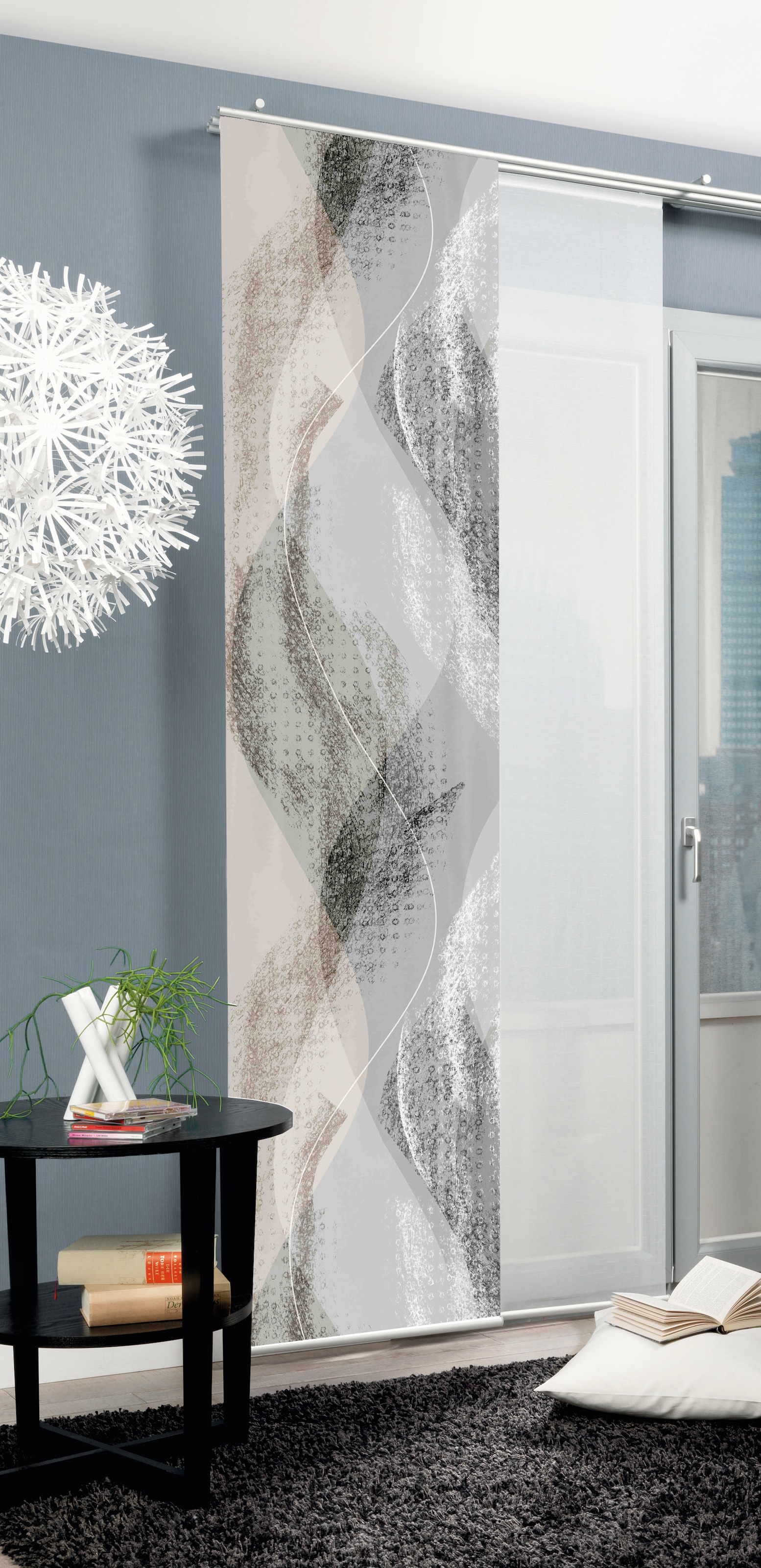 Hinweis Dekoration | Die angegebenen Maße sind die fertig dekorierten Maße.;Eine Schiebegardine ist eine schmale, glatt hängende Stoffbahn, die sich sowohl als Sichtschutz als auch zur Raumteilung eignet. Durch die Schiebetechnik sind Schiebegardinen sehr flexibel einsetzbar. |