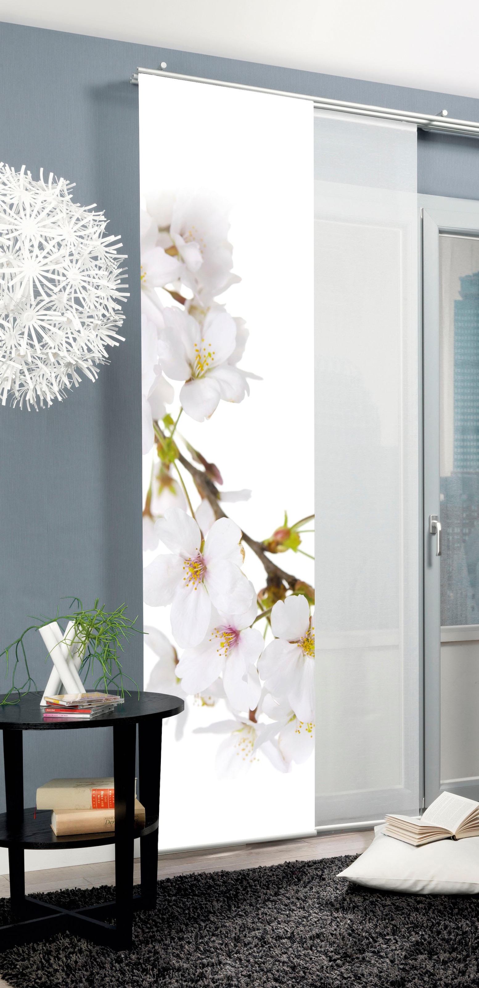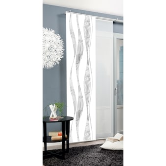 Hinweis Dekoration | Die angegebenen Maße sind die fertig dekorierten Maße.;Eine Schiebegardine ist eine schmale, glatt hängende Stoffbahn, die sich sowohl als Sichtschutz als auch zur Raumteilung eignet. Durch die Schiebetechnik sind Schiebegardinen sehr flexibel einsetzbar. |
