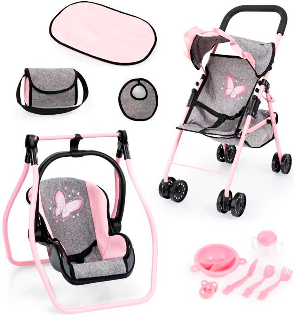 Bayer Puppen Autositz »Deluxe grau/rosa Schmetterling«