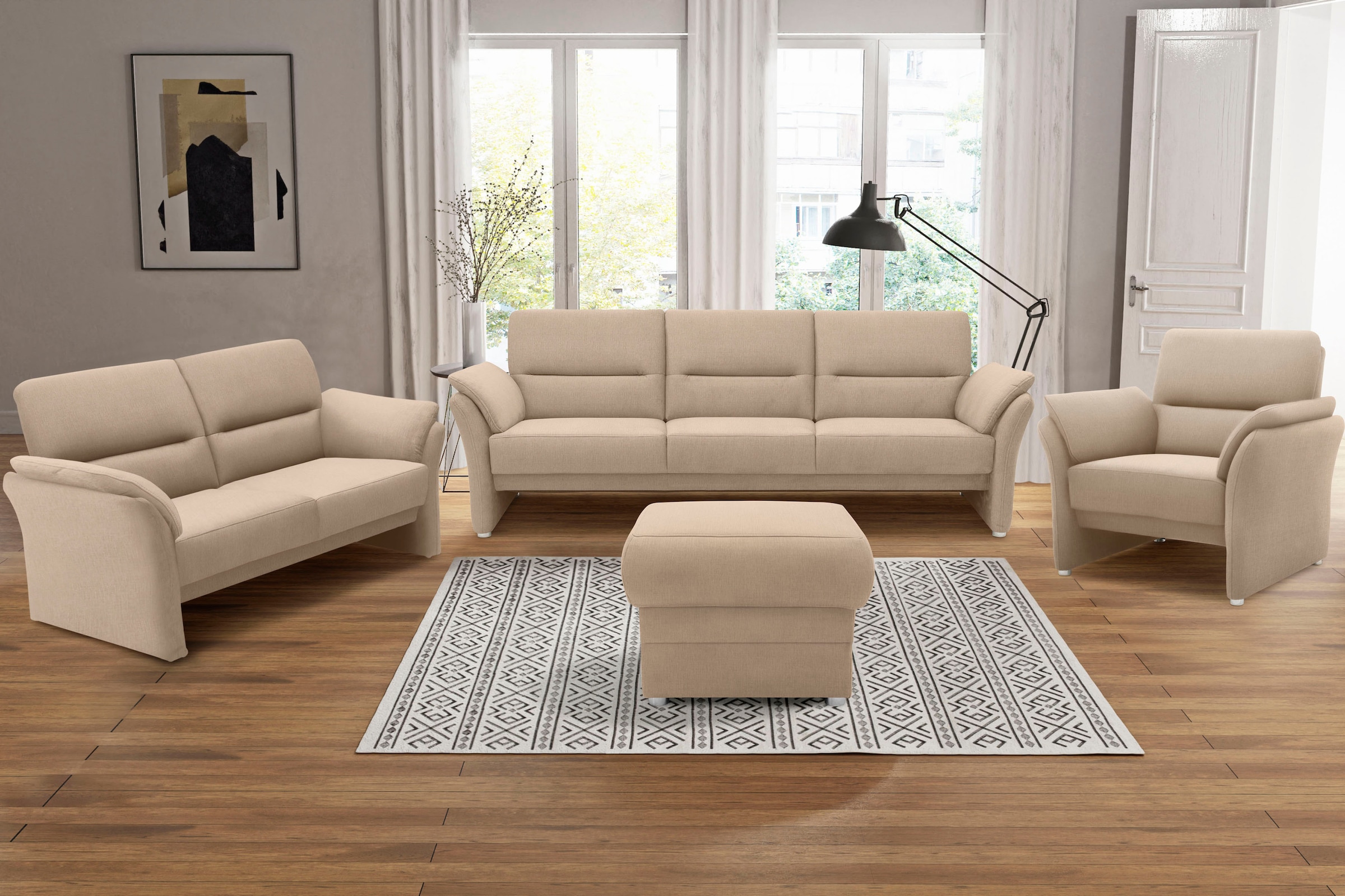 Serienhinweise | Die Serie Follina besteht aus: Polsterhocker, Rundhocker, Sofa 2-Sitzer, Sofa 3-Sitzer und Ecksofa mit Ottomane rechts oder links bestellbar |