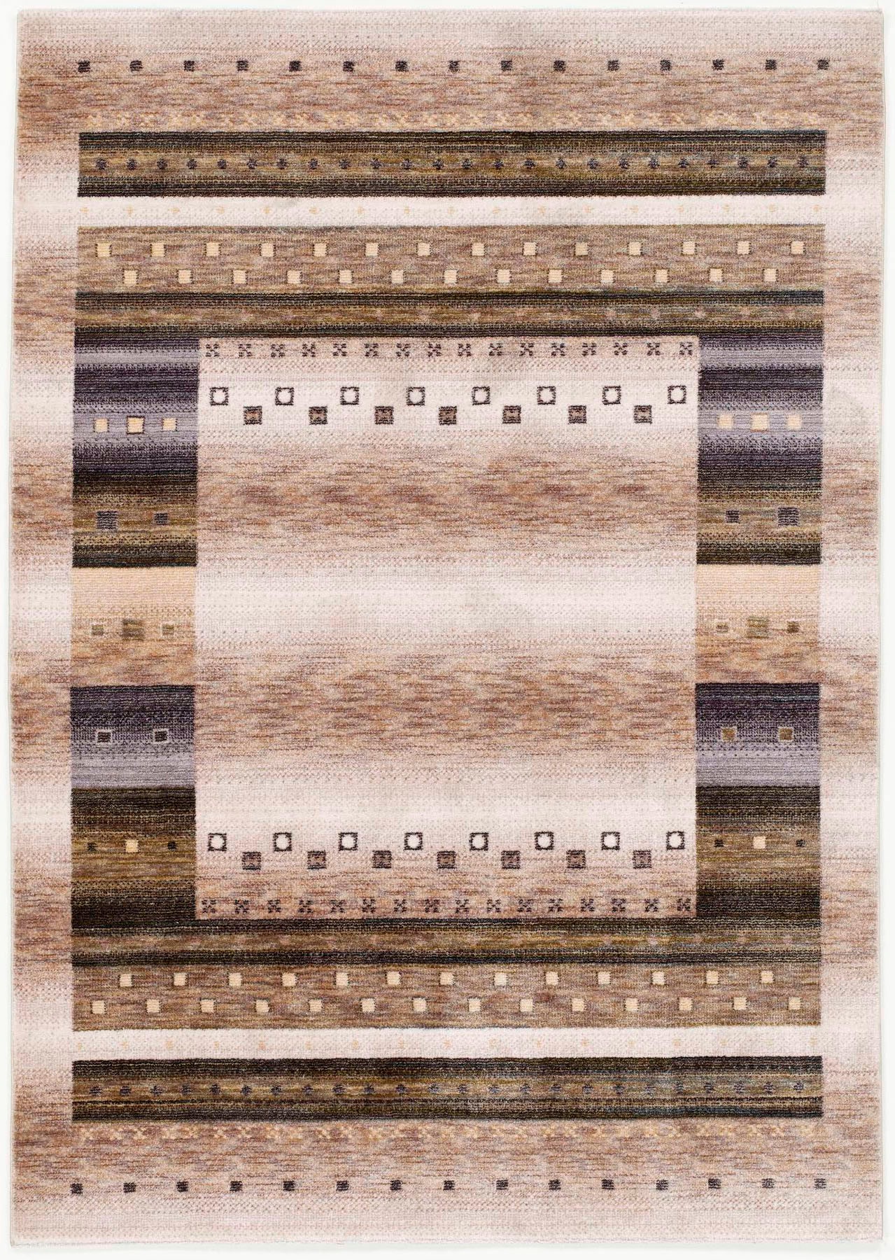Kelim Handgefertigtes Flachgewebe mit traditionellem Muster und eingearbeiteter Fransenkante an den Schmalseiten. Hochwertiger Materialmix, antistatisch, schmutzunempfindlich und strapazierfähig. Mit Textilrücken. Für Fußbodenheizung geeignet. 80% Schurwolle, 10% Baumwolle, 7% Polyester, 3% Viskose.