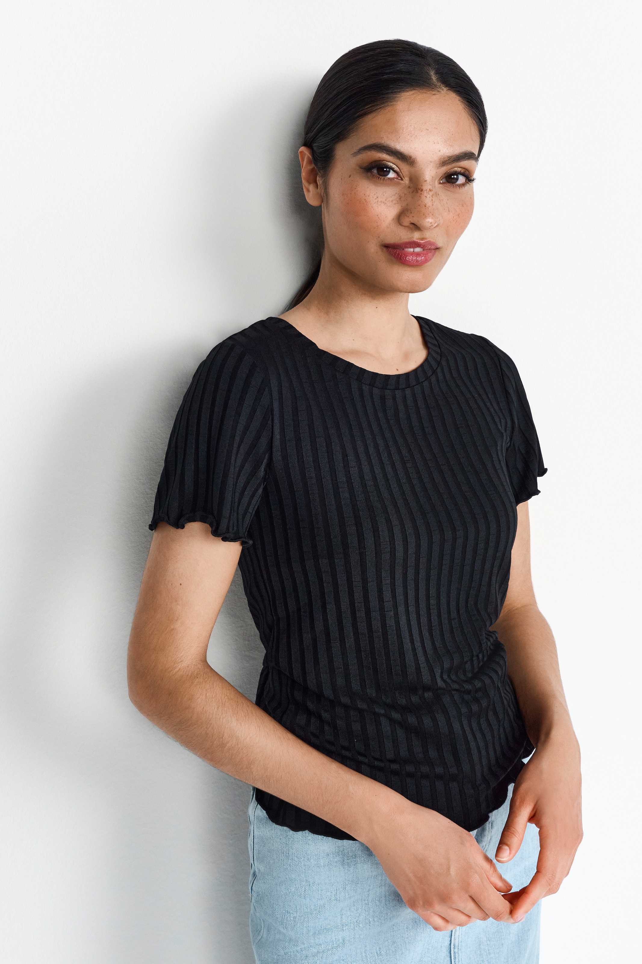 RICHROYAL Kurzarmshirt Mit gewelltem Saum an Rumpf und Ärmeln