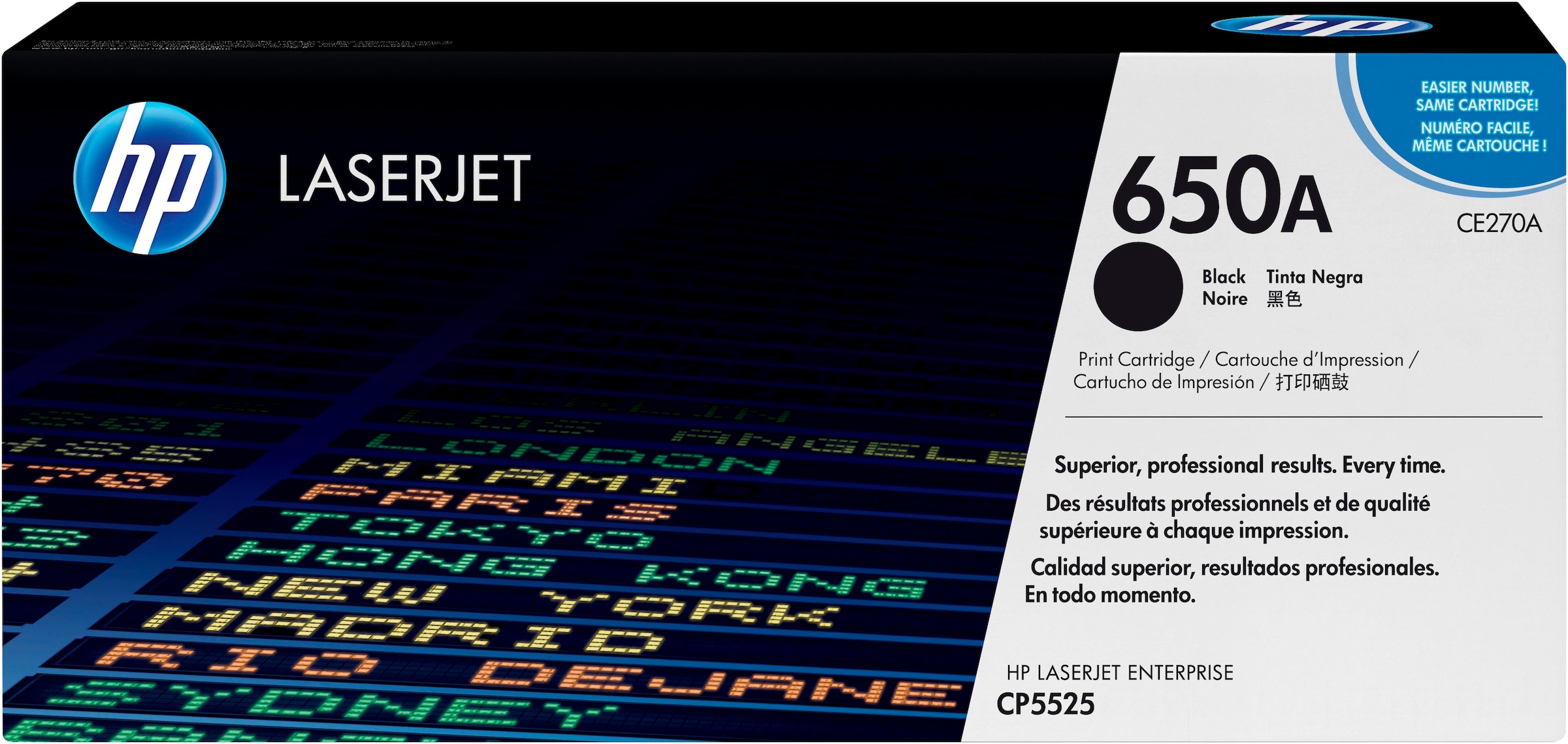 HP 650 LaserJet-Druckzubehör produziert herausragende Geschäftsdokumente mit glänzenden, fotoähnlichen Farben. Original HP Tonerkartuschen mit HP ColorSphere-Technologie liefern Ergebnisse in Druckereiqualität auf einer Reihe von Papieren.