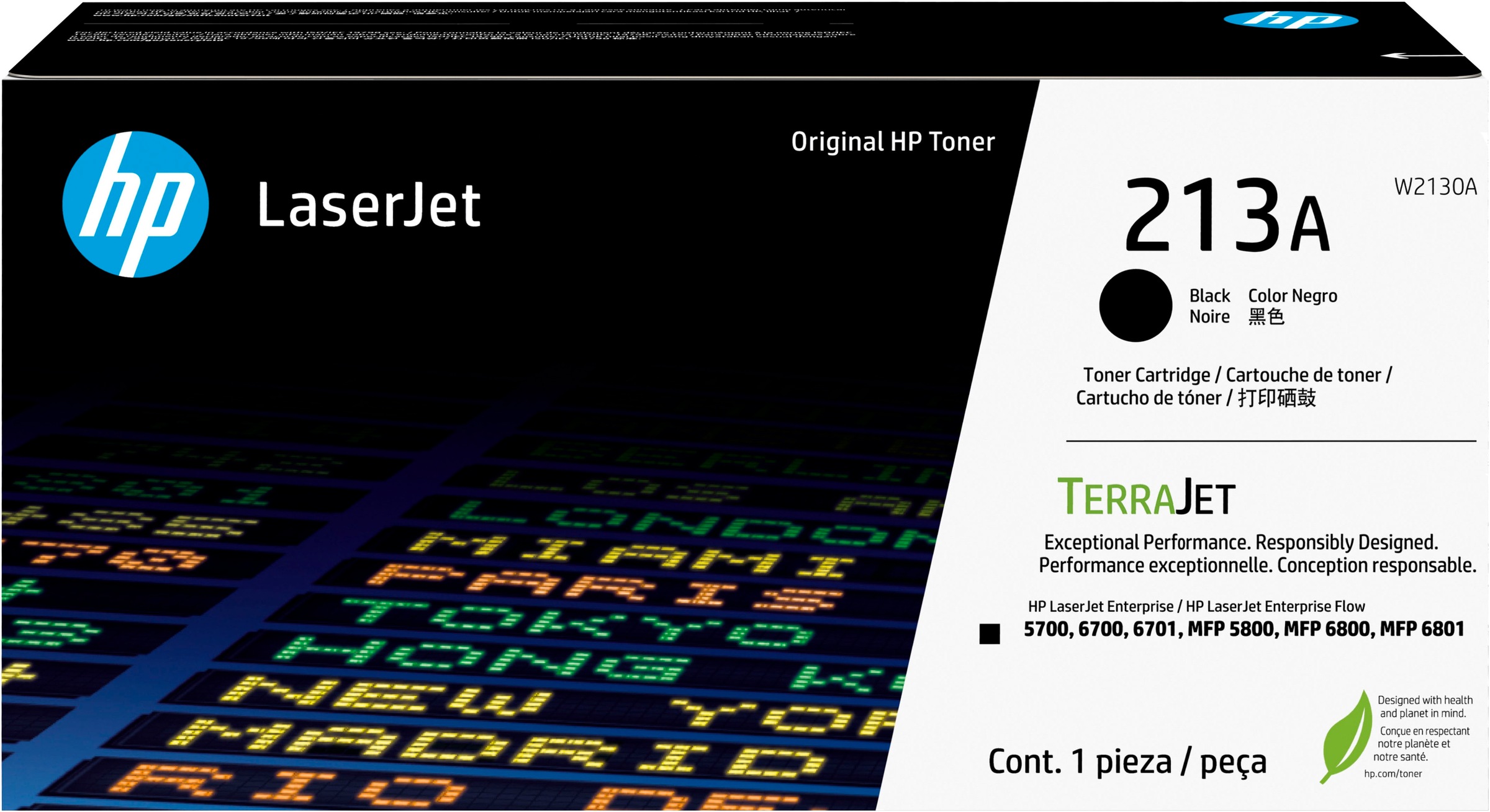 - HP 213 Tonerkartusche funktioniert mit: HP LaserJet Enterprise 5700, 5800, 6700, 6701, 6800, 6801.