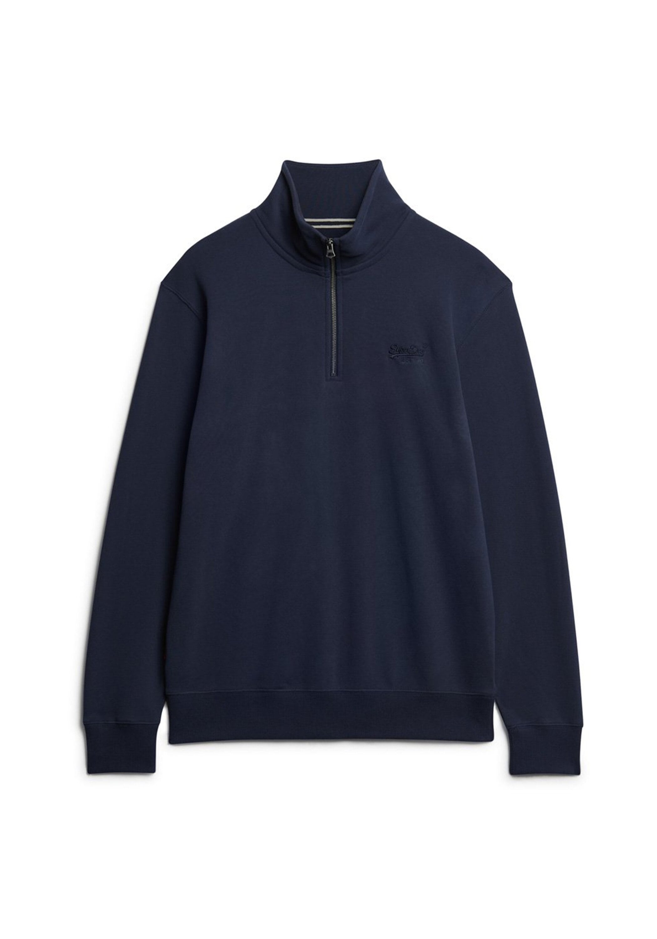 Einfarbiger Henley Sweatpullover für Herren von der Marke Superdry. Mit kleinem Logo auf der Brust und Kragen. Regular Fit.