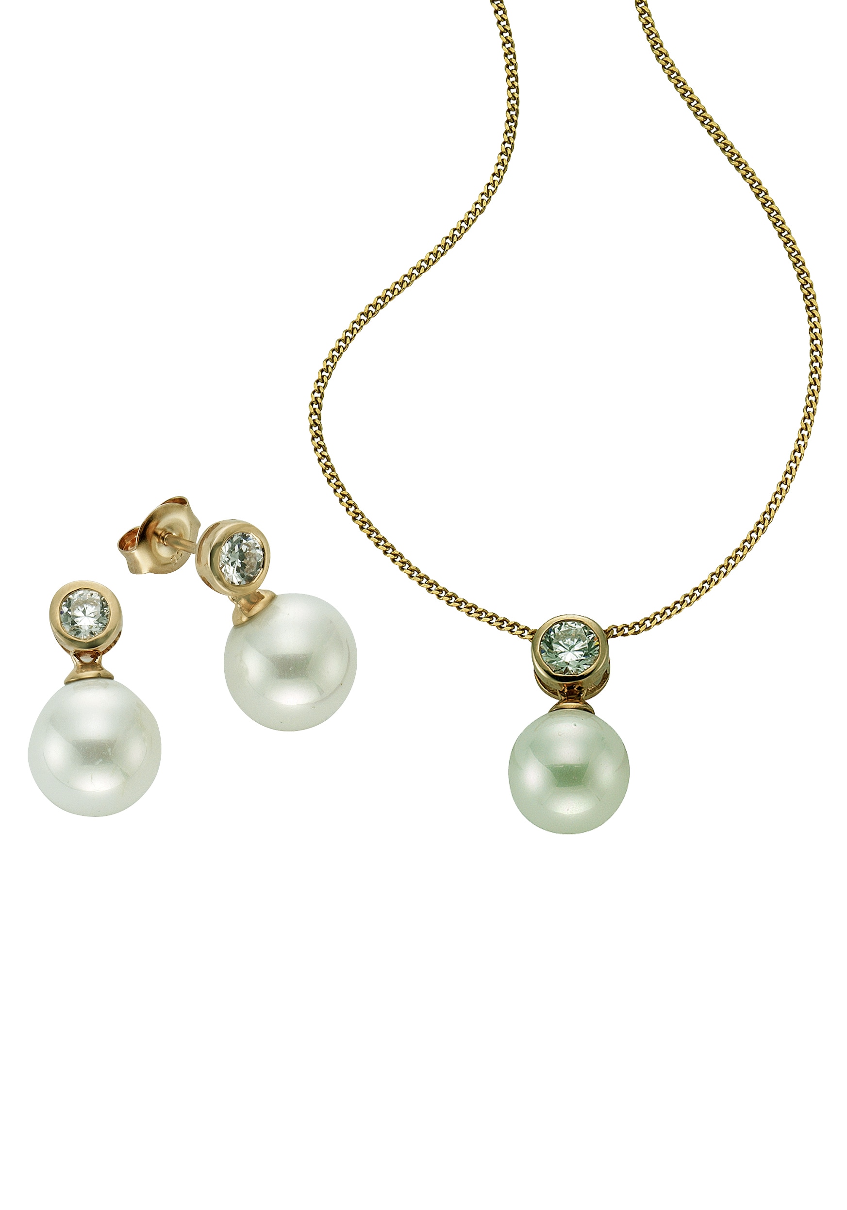 Elli Paar Ohrstecker »Schmuck Geschenk Silber 925 Ohrringe« mit Glasstein - mit Muschelkernperle