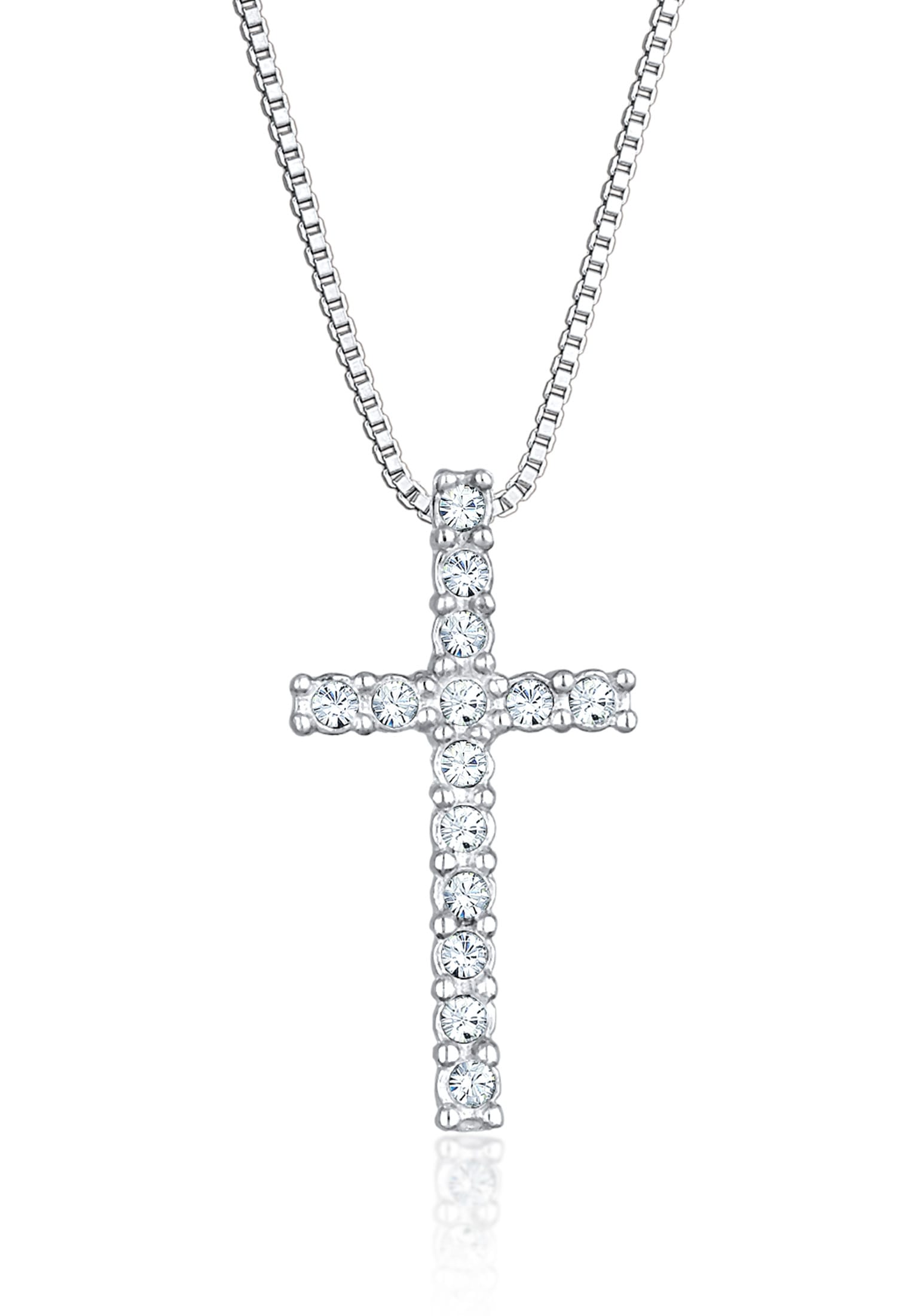 Kuzzoi Lange Kette »Halskette Kreuz Kristalle Religion 925 Silber«