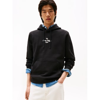Klassisches Herren-Sweatshirt von Tommy Hilfiger. Der Rundhals-Ausschnitt hat ein Rippbündchen. Die Ärmel sind lang. Die dehnbare Sweat-Qualität sorgt für ein weiches und angenehmes Tragegefühl.
