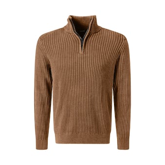 Trendiger Herren-Stehkragenpullover von Blend. Mit einem normalen Schnitt. Die Ärmel sind lang. Außerdem hat der Pullover einen Reißverschluss. Das Oberteil aus dehnbarem Strick passt sich der Körperform an und macht jede Bewegung mit.