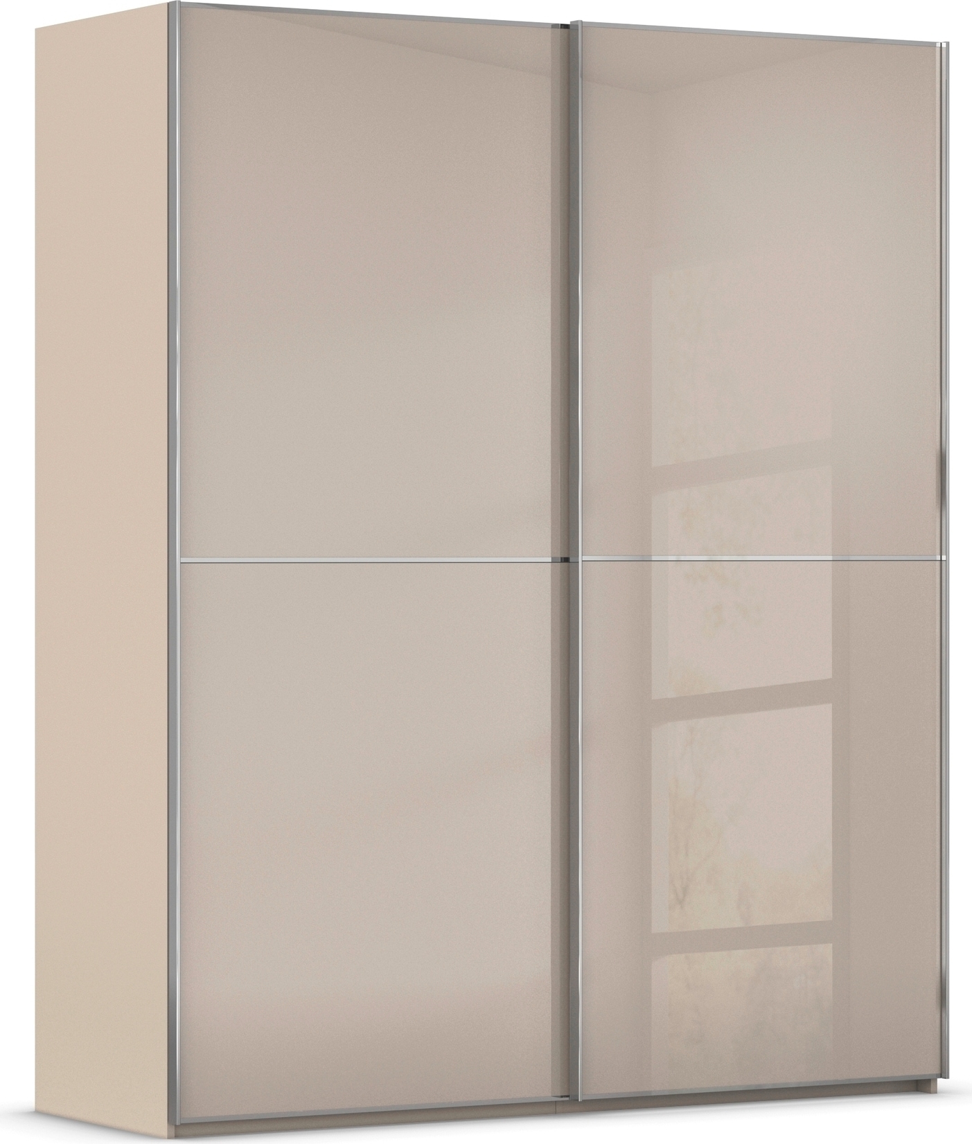 - Moderner Schwebetürenschrank mit edler Glasfront - glänzend oder matt - sowie Metallgriffleisten in passender Farbe