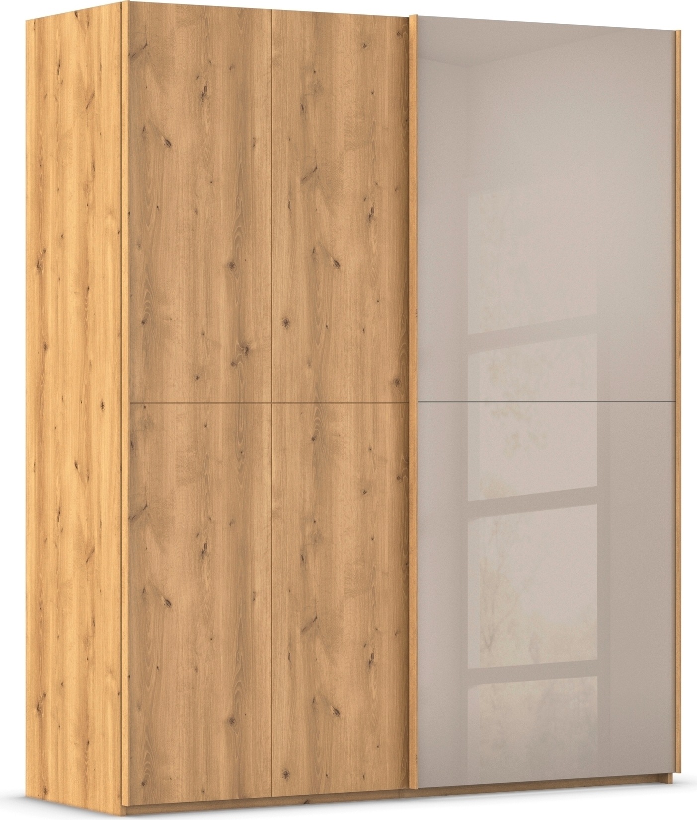 rauch Schwebetürenschrank »Kleiderschrank Schrank Garderobe Schlafzimmerschrank SCALE-WOOD« edle geteilte Front in massiver Asteiche mit Glastüren MADE IN GERMANY
