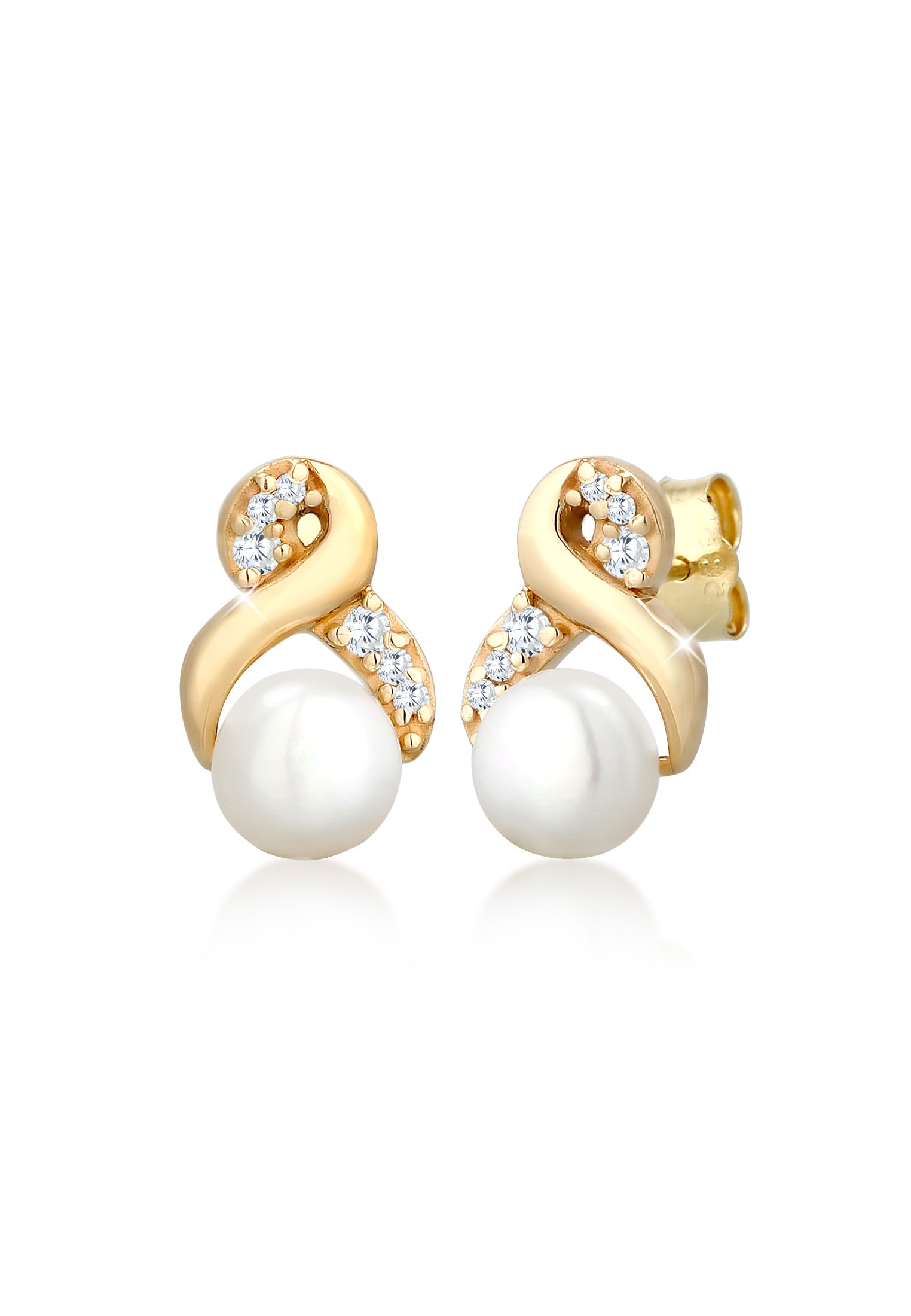 Elli Premium Paar Ohrstecker »Ohrringe Infinity Zirkonia Süßwasserperle 585 Gelbgold«