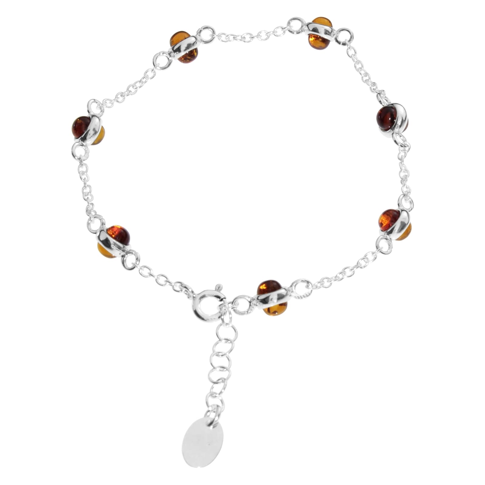 Armband aus Sterlingsilber 925/000 mit leuchtenden Bernsteinen, 17,5 bis 19,5 cm lang, verstellbar.