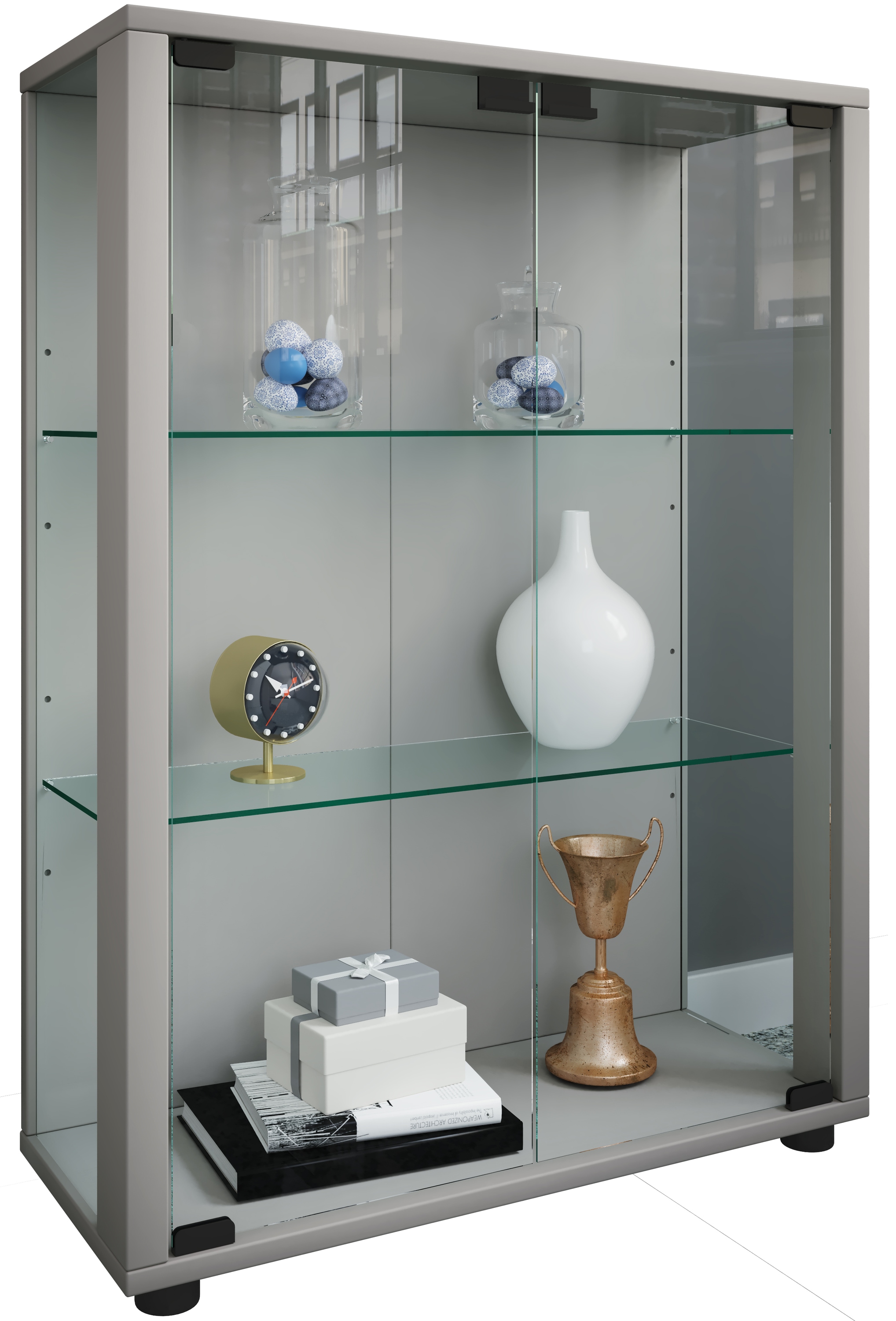 - Glas Vitrine mit 2 variablen Glasböden für flexible Nutzung