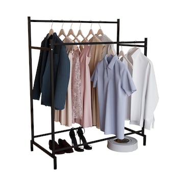 - Kleiderregal kann gedreht werden d. h. die Position der Regale kann links oder rechts sein