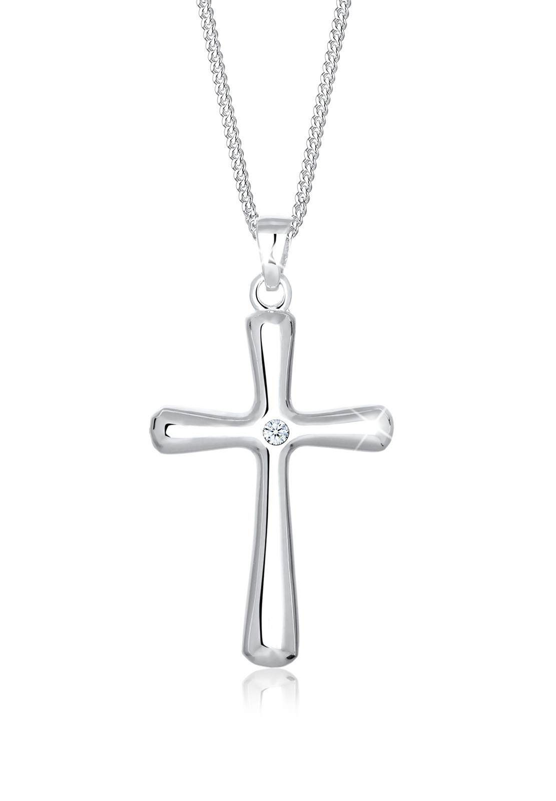 Elli DIAMONDS Silberkette »Halskette Kreuz Diamant Weiß Brillantschliff (0.03 ct) 925 Sterling Silber«