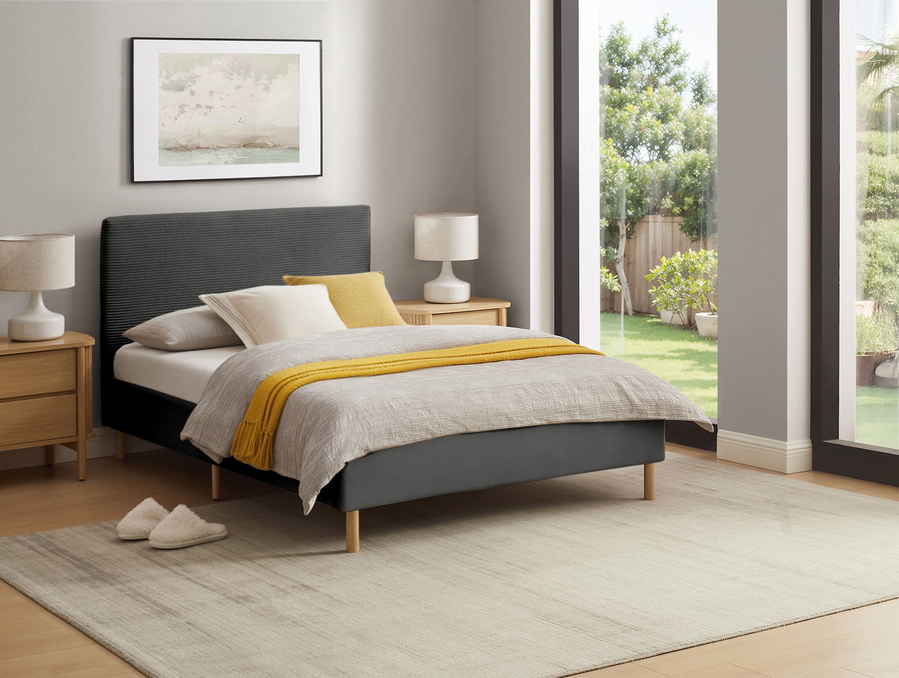 - Bezugsstoff aus Cord: Sorgt für ein dreidimensionales Design im Kopfteil, das sowohl stilvoll als auch angenehm im Griff ist.