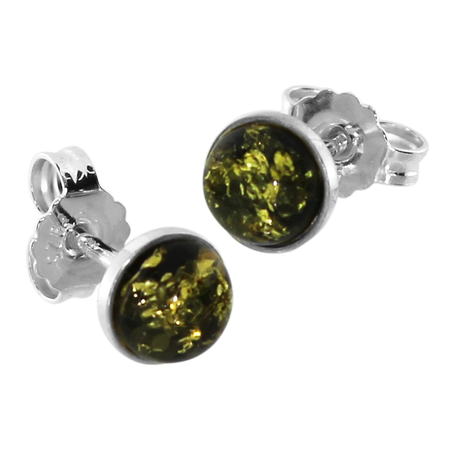 Klassische Ohrstecker 4x4 mm aus Silber 925/000 mit Bernstein. Die Steine sind sicher in der Silberfassung eingefasst. Die Bernsteine wurden bearbeitet bzw. behandelt und schimmern dadurch grünlich.