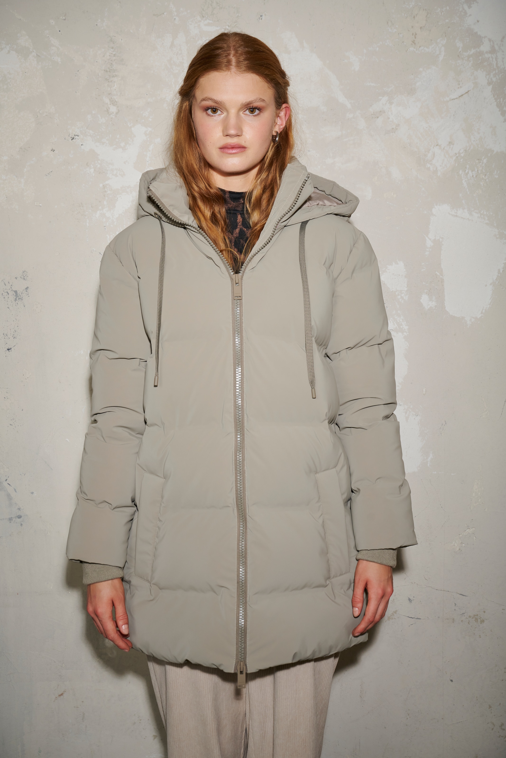 - Hochschließender Kragen mit Kapuze
