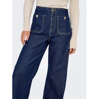 Figurbetonende Damen-High-waist-Jeans der Marke ONLY. Lässig geschnittenes Hosenbein und hohe Leibhöhe. Versehen mit einem Markenlabel. Kombinierbar für entspannte Tage Zuhause oder unterwegs. Die widerstandsfähige und stabile Jeansqualität macht die Hose langlebig.