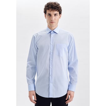 Maskuline Ästhetik: Ihre Silhouette wird stilvoll inszeniert mit dem Business Hemd von Seidensticker aus der "SMART CLASSICS" Kollektion. Ob Büro, Veranstaltungen oder Homeoffice - es ist ein eleganter Klassiker, der sich einfach kombinieren lässt. Die gewebte Struktur ist aus 100% Baumwolle - die perfekte Leinwand für Ihre ansprechenden Kombinationen. In der Passform Comfort ist das Business Hemd eine bequeme Casual-Variante. Smarte Modernität mit formellen und lockeren Aspekten prägt dieses Hemd von Seidensticker. Stilsicher und elegant liegen Sie mit diesem Langarm-Business Hemd immer richtig. Es wird durch weitenverstellbare Manschetten abgerundet. Dank dem Kentkragen wird der universelle Business-Charakter besonders betont. Als dezentes Detail ist zudem eine Brusttasche aufgenäht worden.