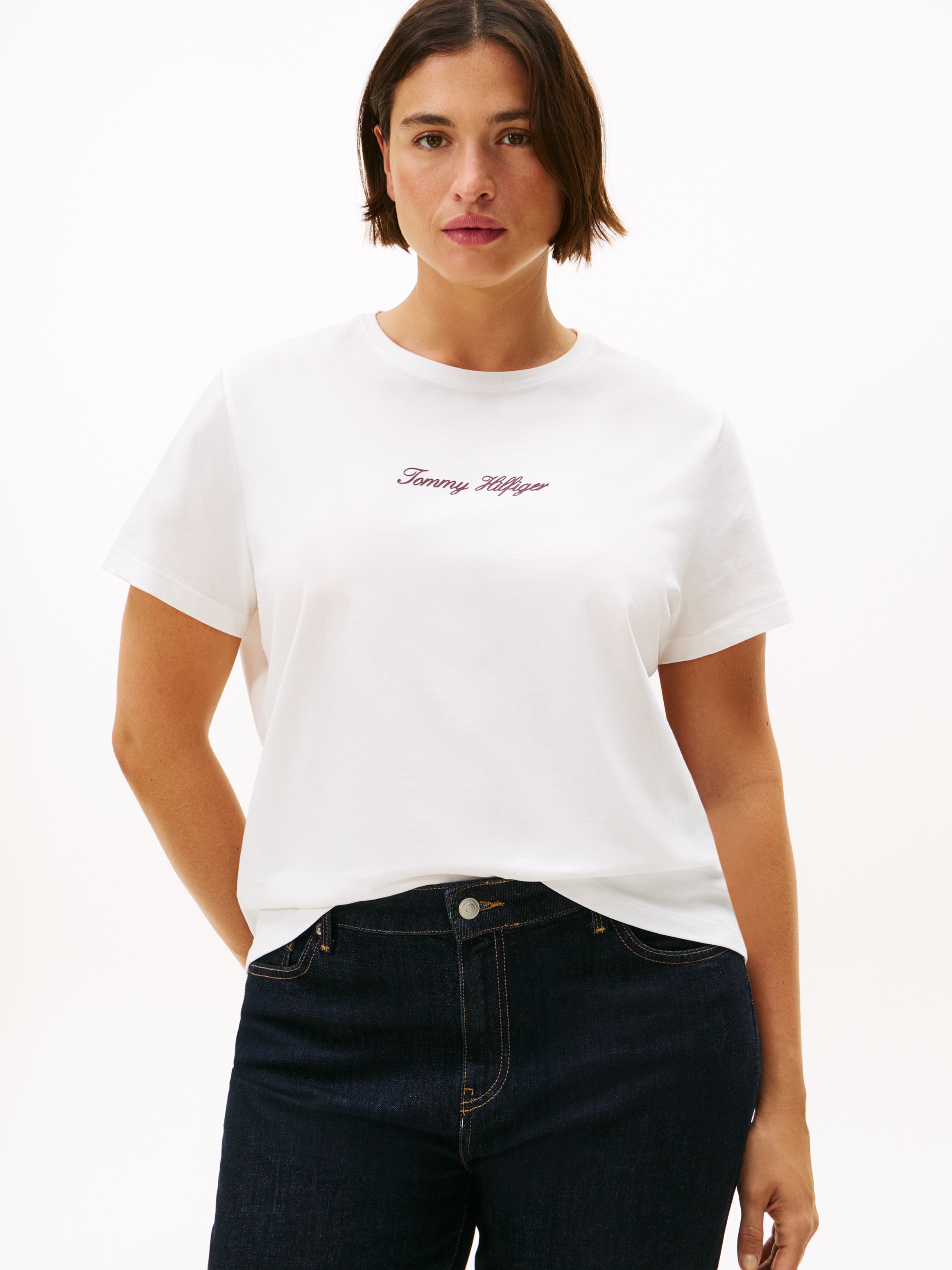 Tommy Hilfiger Curve Kurzarmshirt »CRV CLASSIC SCRIPT REG SS TEE« in großen Größen