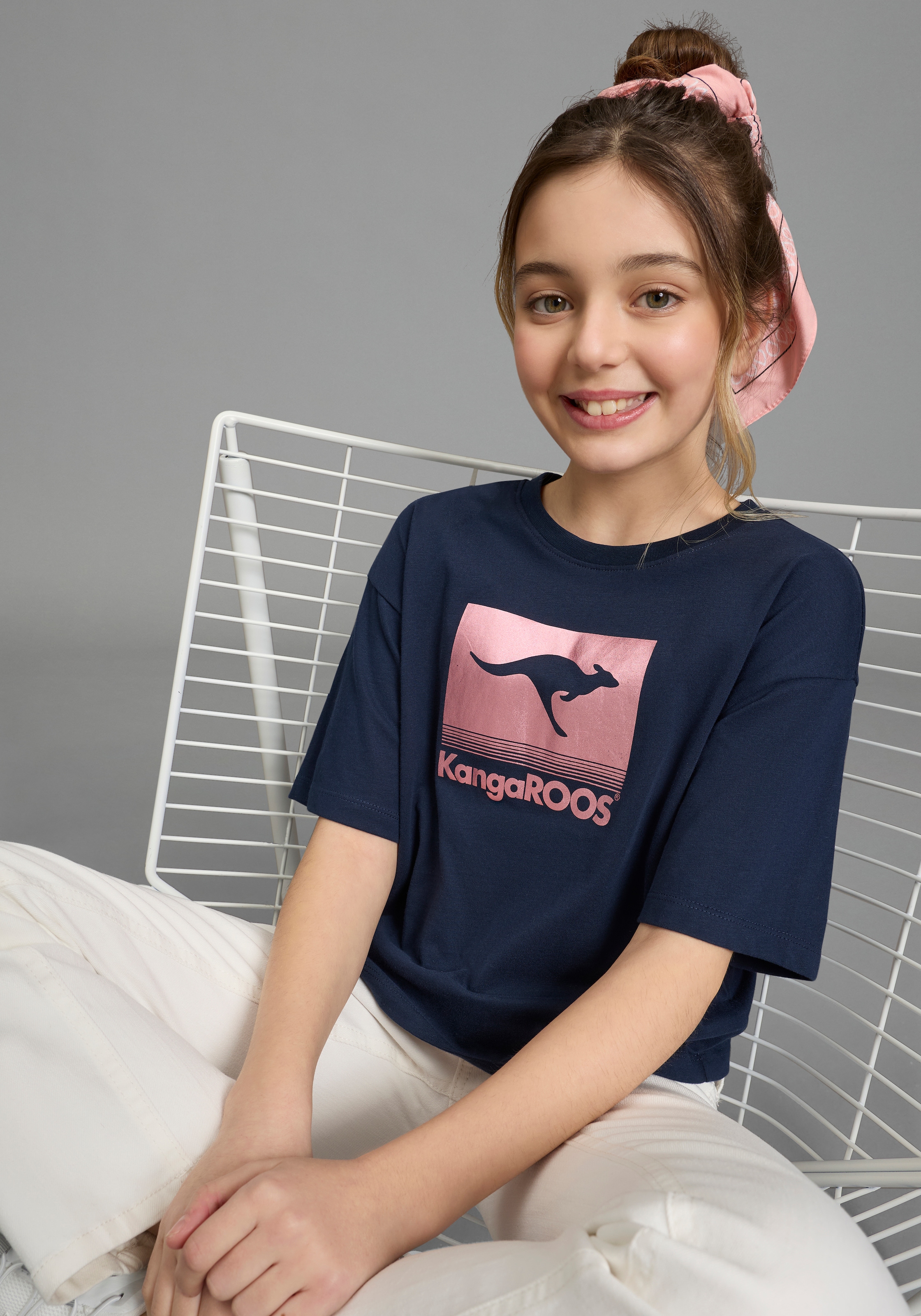 KangaROOS Langarmshirt »mit Einsätzen für kleine Mädchen« Shirt mit modischen Einsätzen und Logo-Stickerei