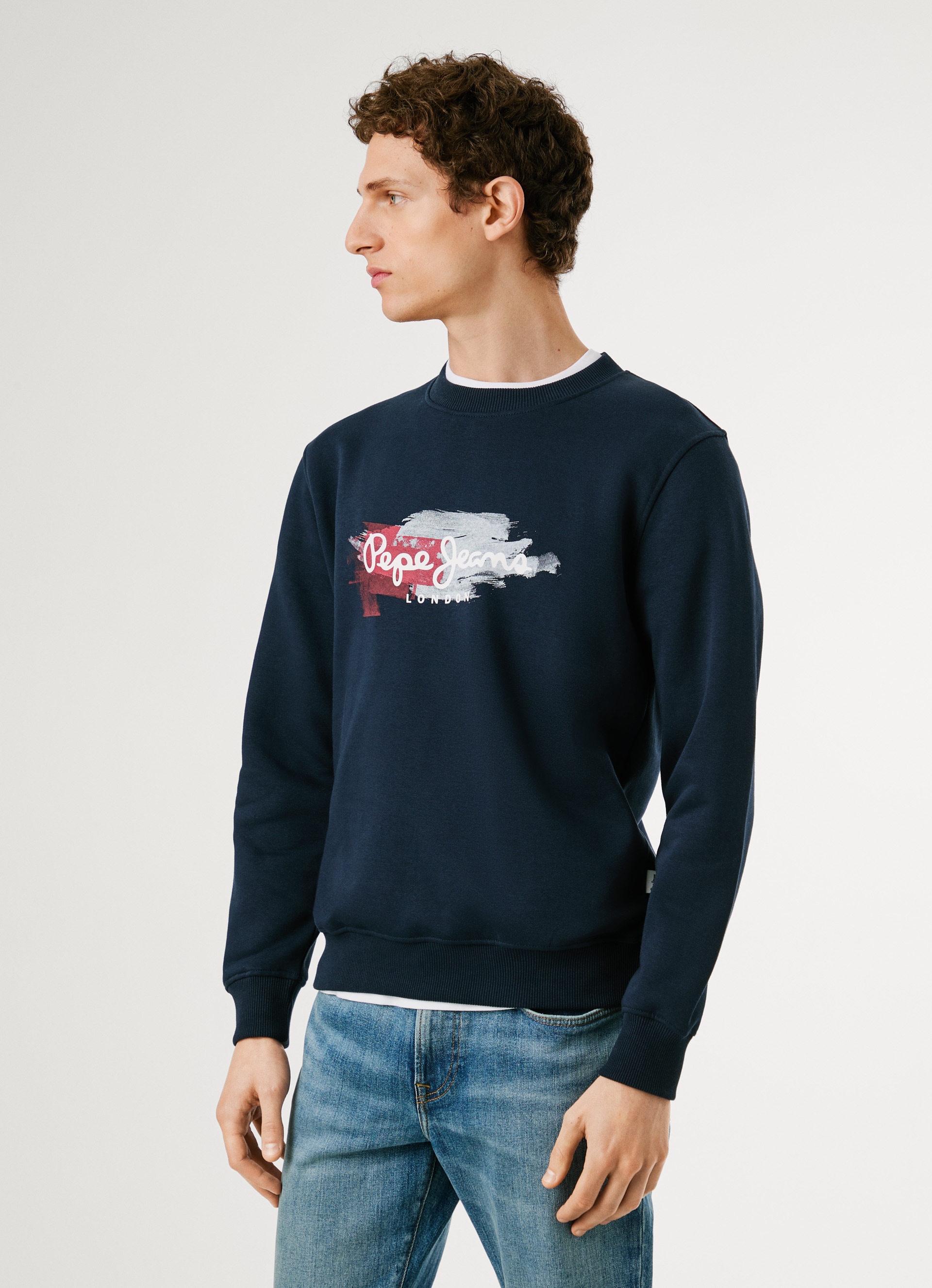 Kombistarkes Herren-Sweatshirt von Pepe Jeans. Mit einem normalen Schnitt. Der Ausschnitt zeigt sich mit einem Rippbündchen. Die Ärmel sind lang. Durch die weiche Sweat-Qualität fühlt sich das Oberteil weich auf der Haut an.